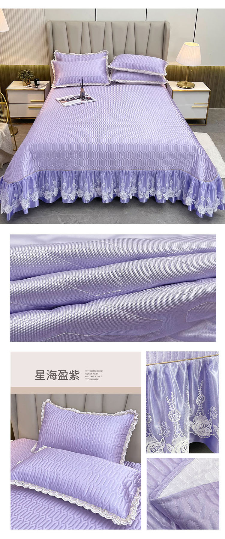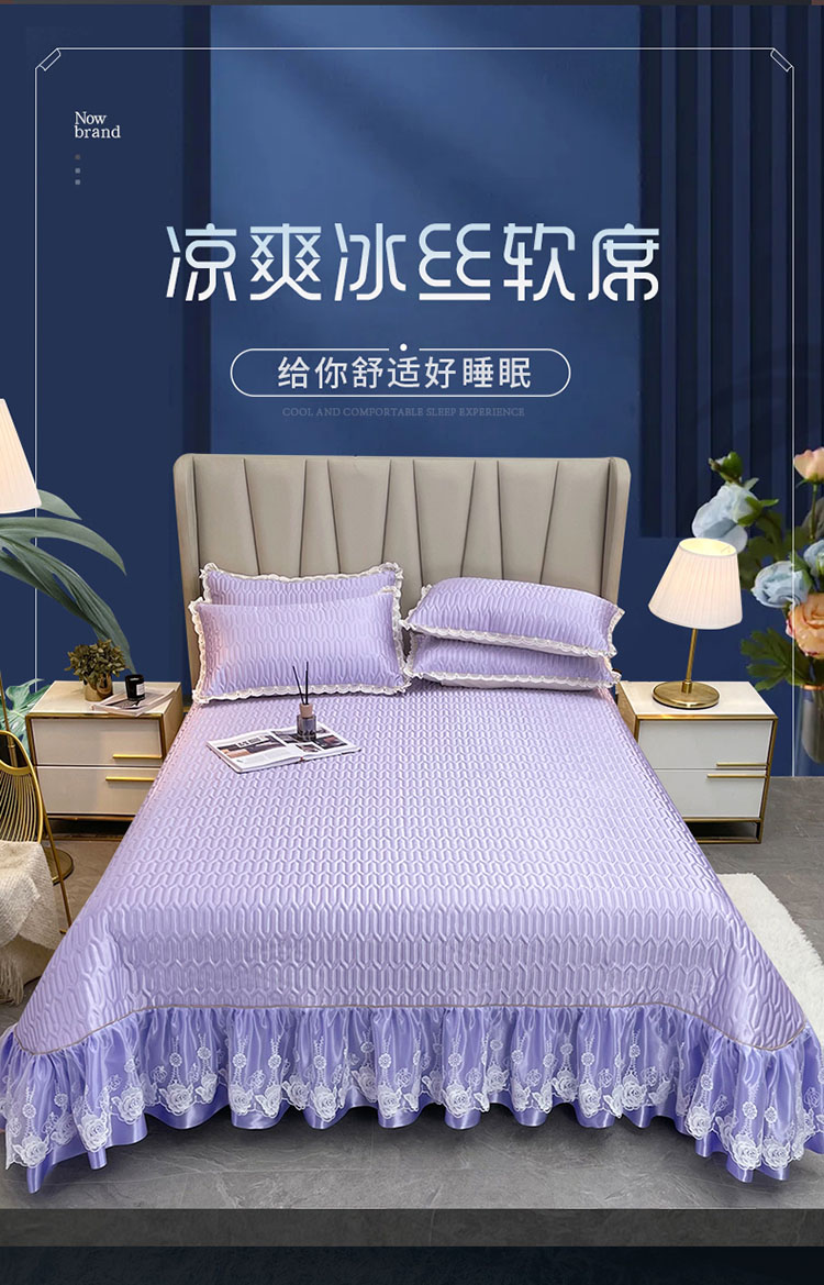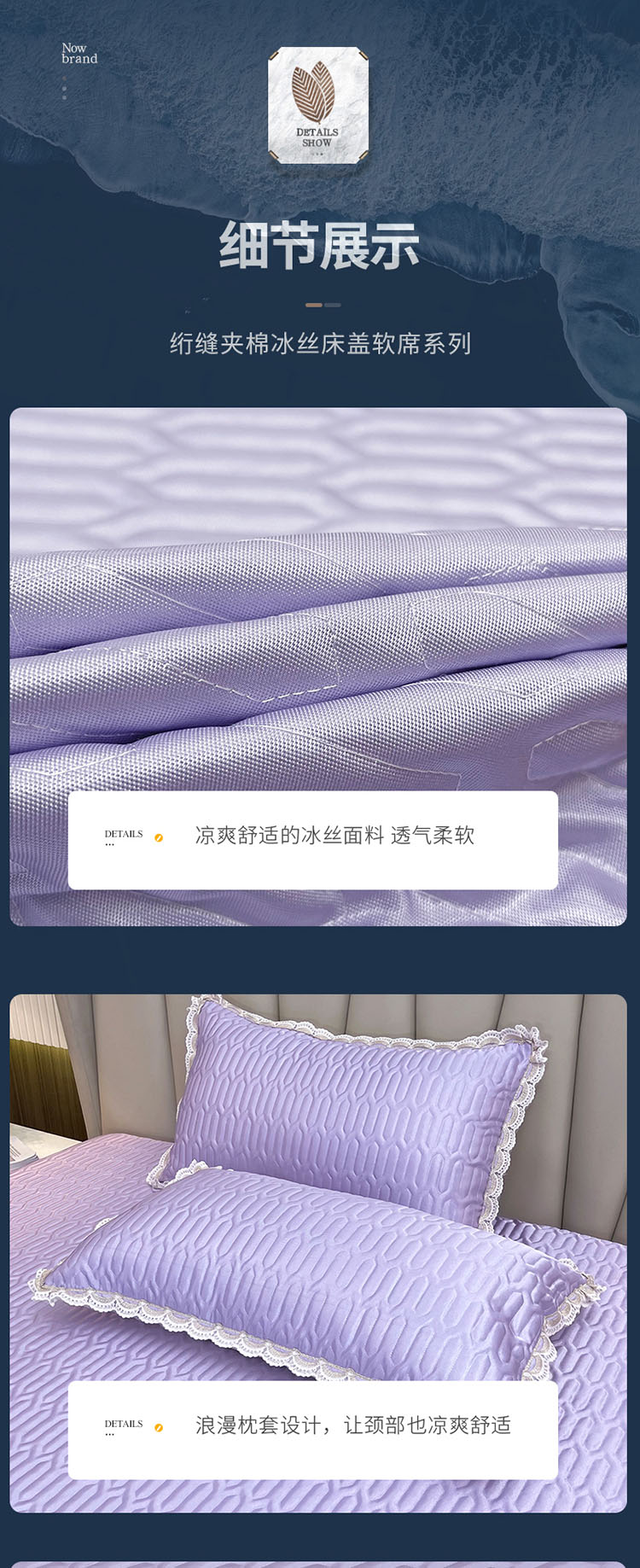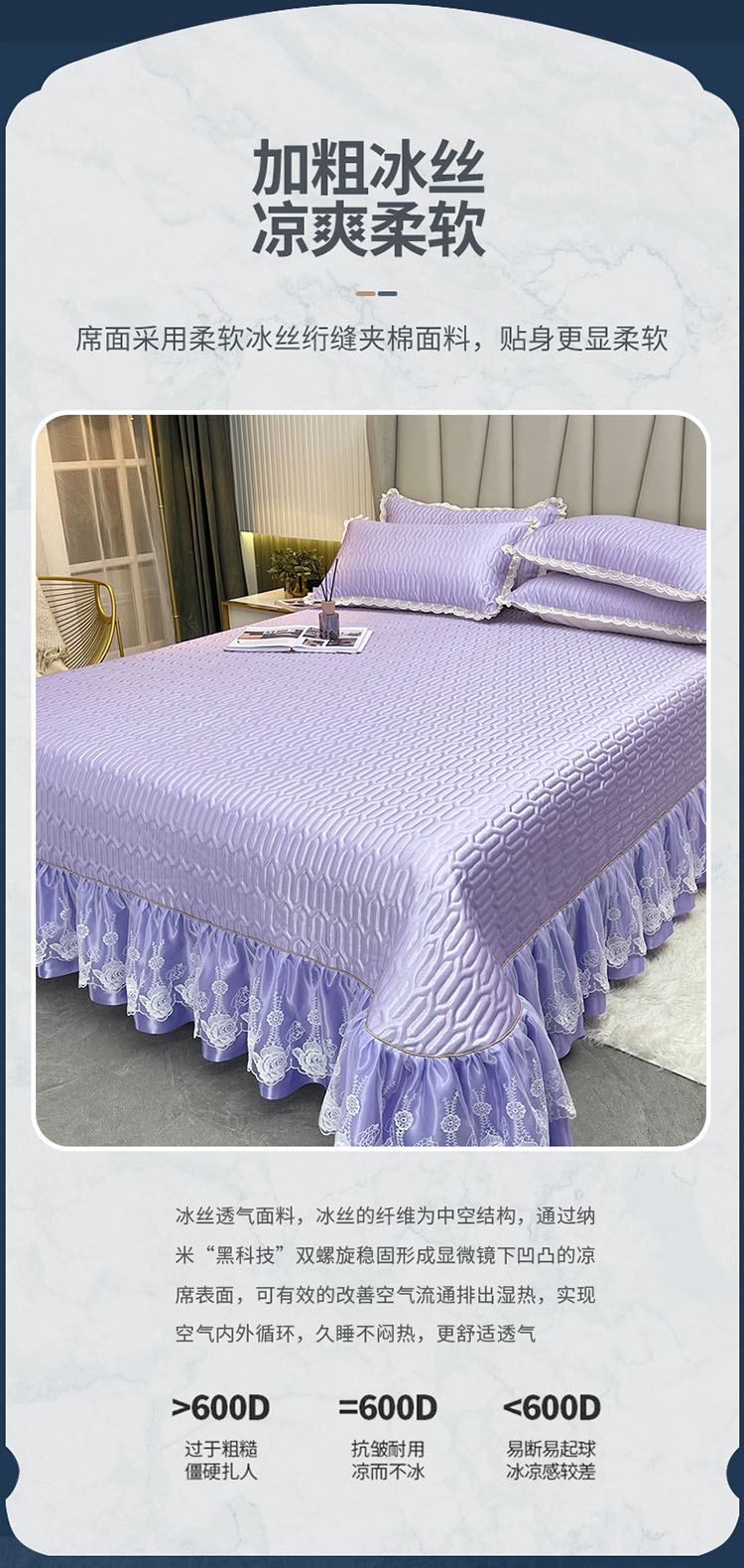 商品名称:恋尚 2023新款冰丝夹棉纯色床盖款软凉席三件套 星海盈紫