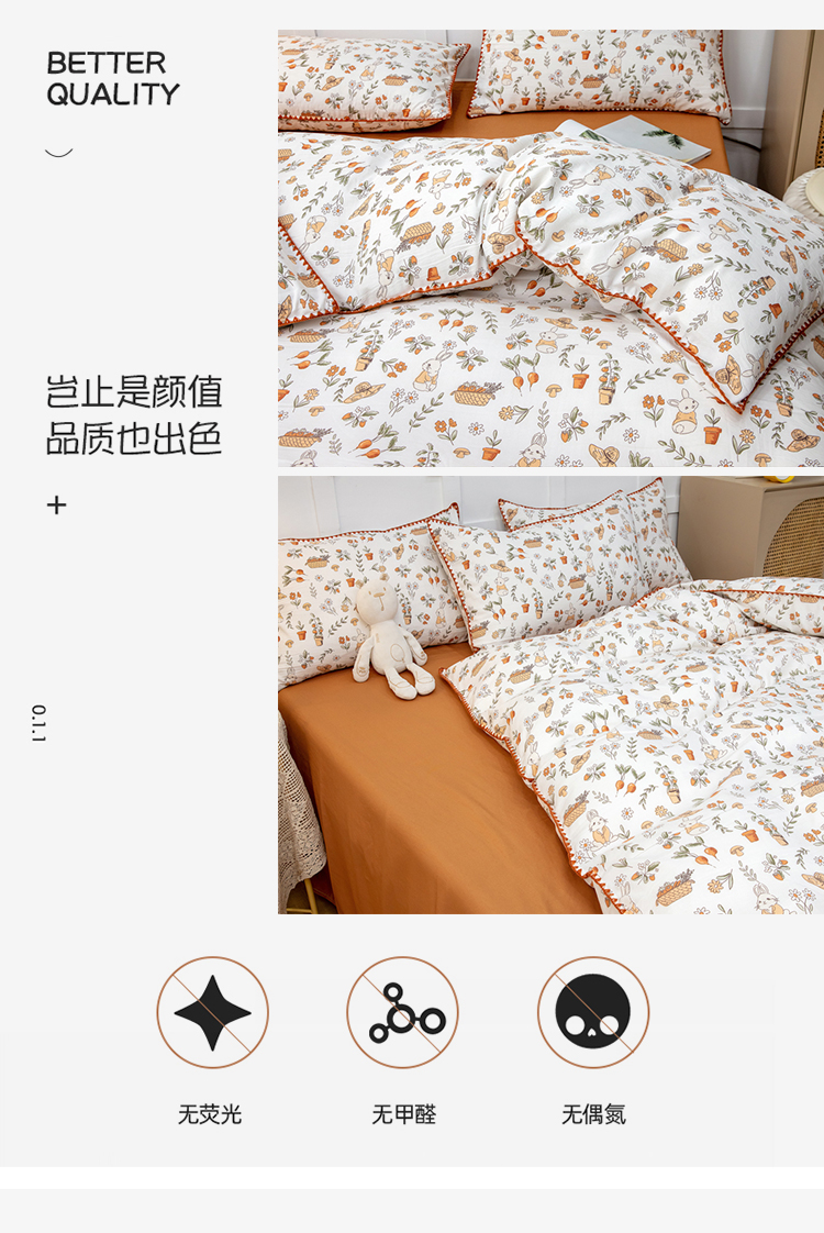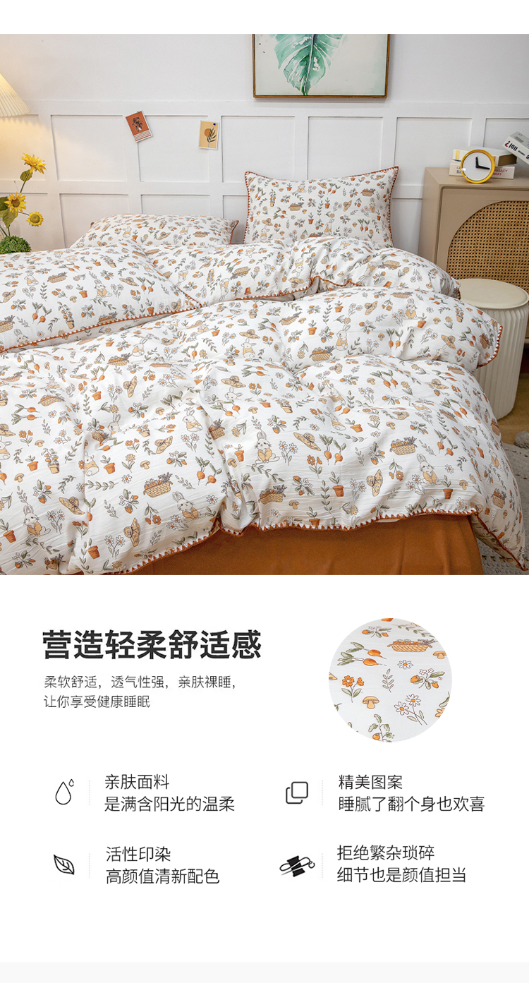 当前位置: 91家纺网 > 商品网购 > 床品套件 > 四件套 > 水洗棉四件套 > 乐居坊2023新款印花水洗双层纱贝壳绣四件套 萌兔乐园