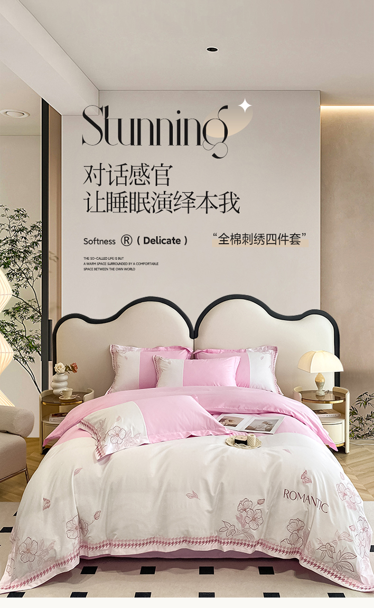 (总)苹果星家纺 2023双面100纯棉刺绣天丝棉四件套全棉礼盒包装