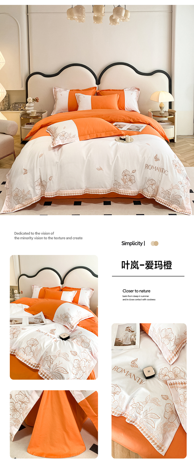 (总)苹果星家纺 2025新款230克全工艺轻奢简约撞色拼接酒店风绣花四件套,曼德拉-橙色,曼德拉-粉色,曼德拉-咖色,曼德拉-浅蓝,曼德拉-深蓝