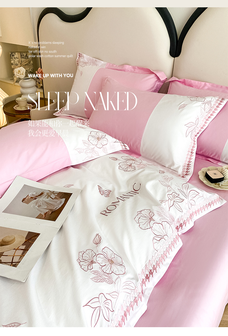 (总)苹果星140支贡缎水洗天丝真丝棉公主风绣花夏被,粉玉,麦芽黄,浅蓝,浅绿,浅紫