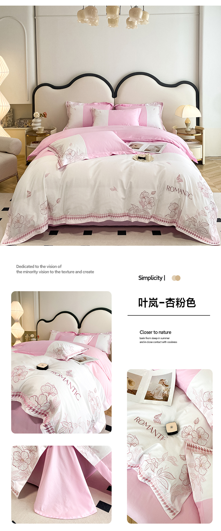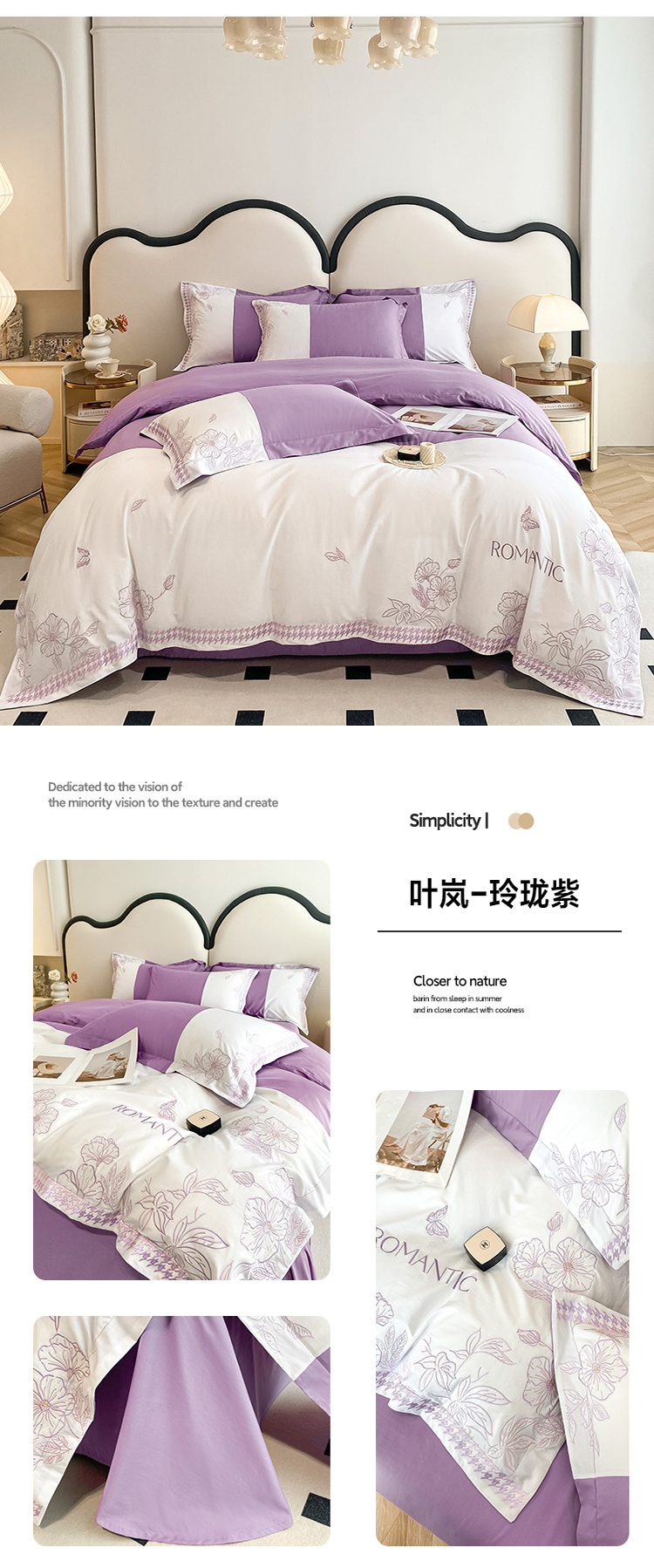 (总)苹果星家纺 2025新款无印良品风230克全消光牛奶绒大拼角压线刺绣四件套-塔莉,塔莉-棕榈,塔莉-粉,塔莉-黄,塔莉-轻蓝,塔莉-深蓝,塔莉-紫,塔莉-酒红