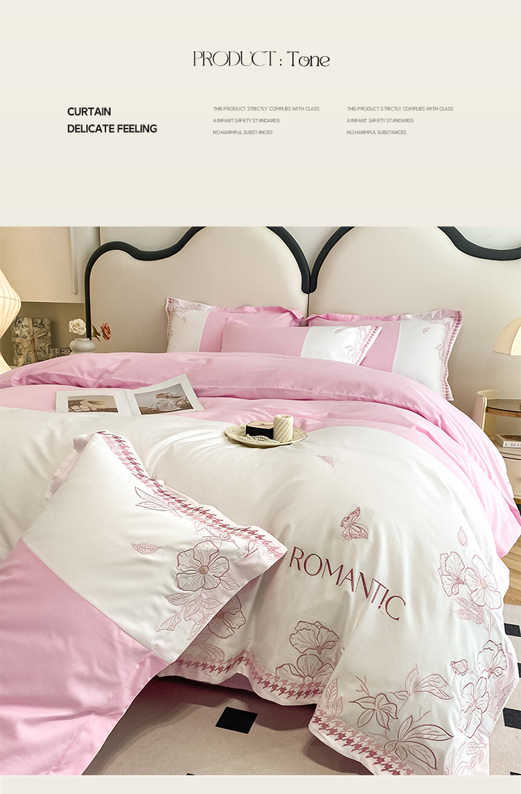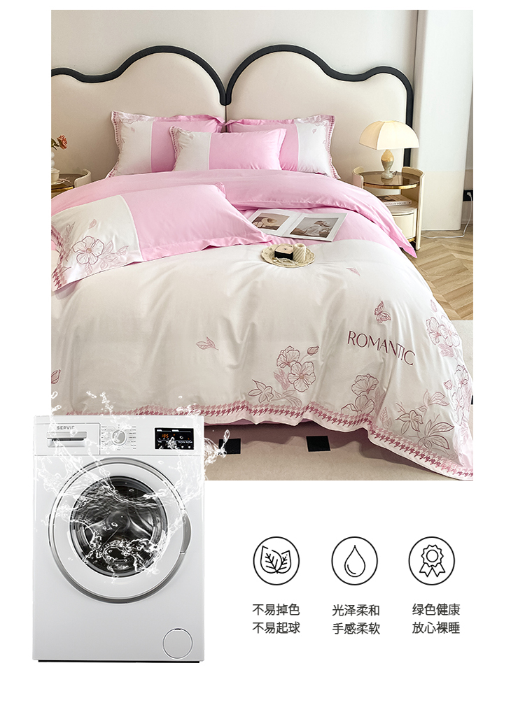 (总)苹果星新款140s贡缎水洗天丝棉刺绣花边四件套朵拉,粉色,魅力蓝,梦幻紫,奶黄,青草绿