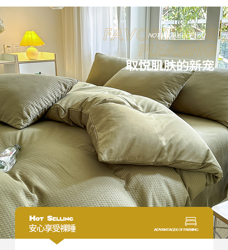 (总)米粒家纺 2023新款AB版华夫格四件套,金咖,琉璃绿,莫兰,木果,奶黄,奶油白,浅紫,清新绿,石墨兰,梧桐紫,银色,樱花粉