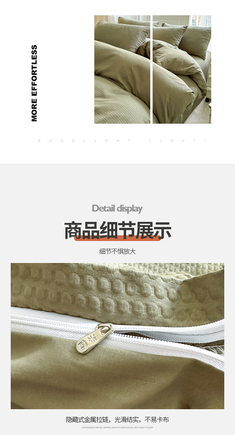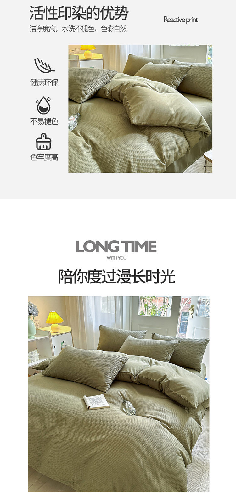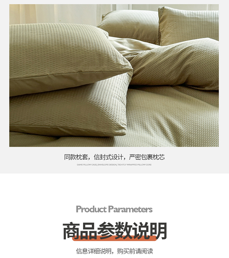 商品名称:米粒家纺 2023新款AB版华夫格四件套 琉璃绿