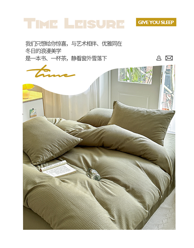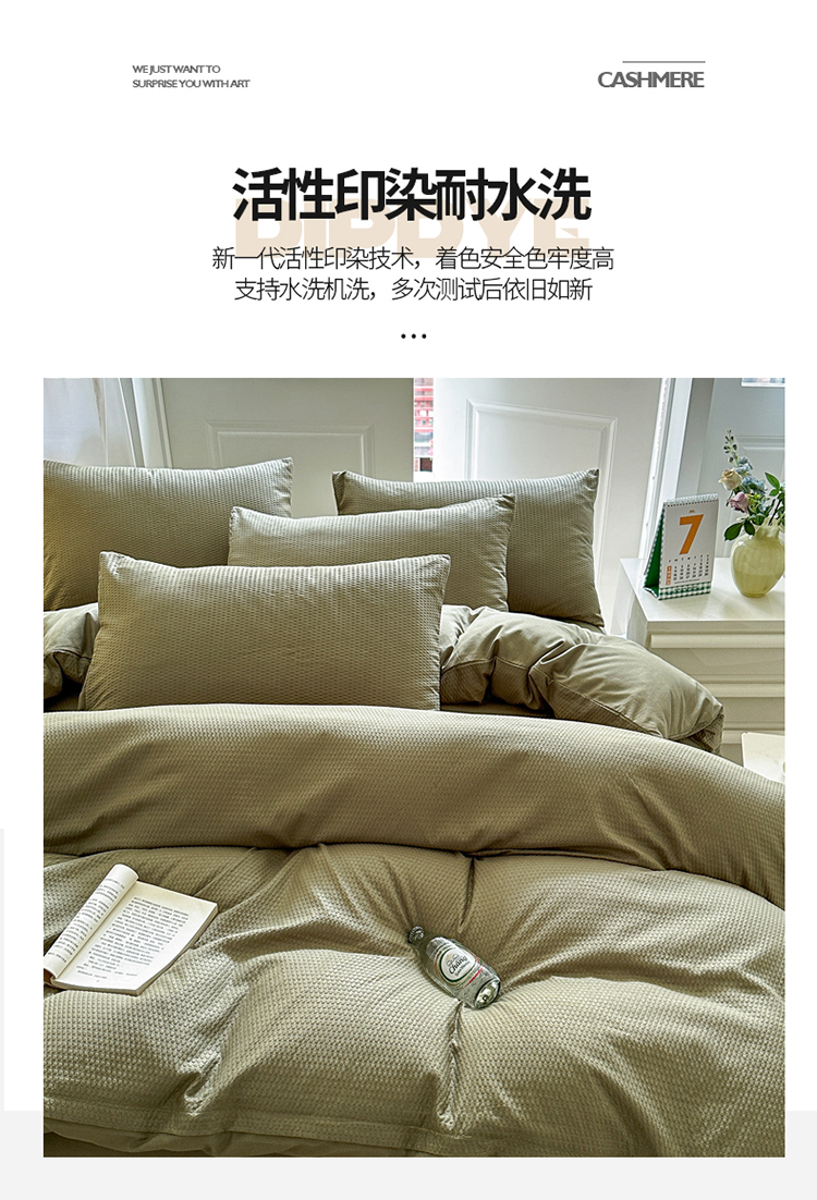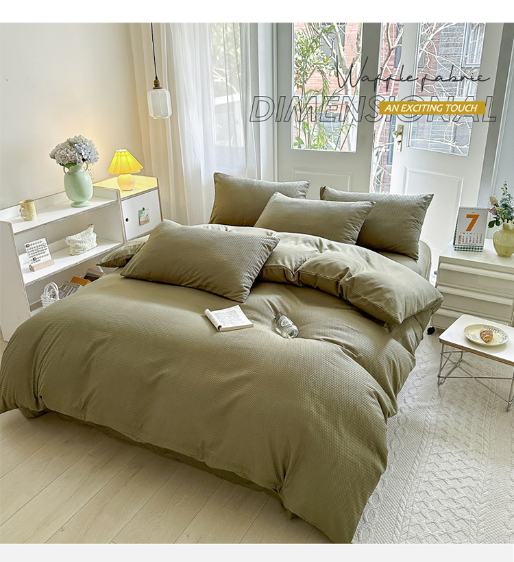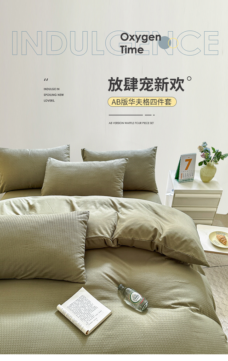 米粒家纺 2023新款AB版华夫格四件套 琉璃绿