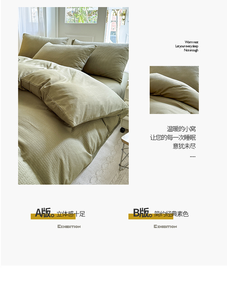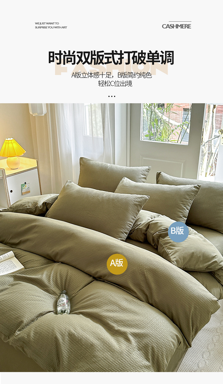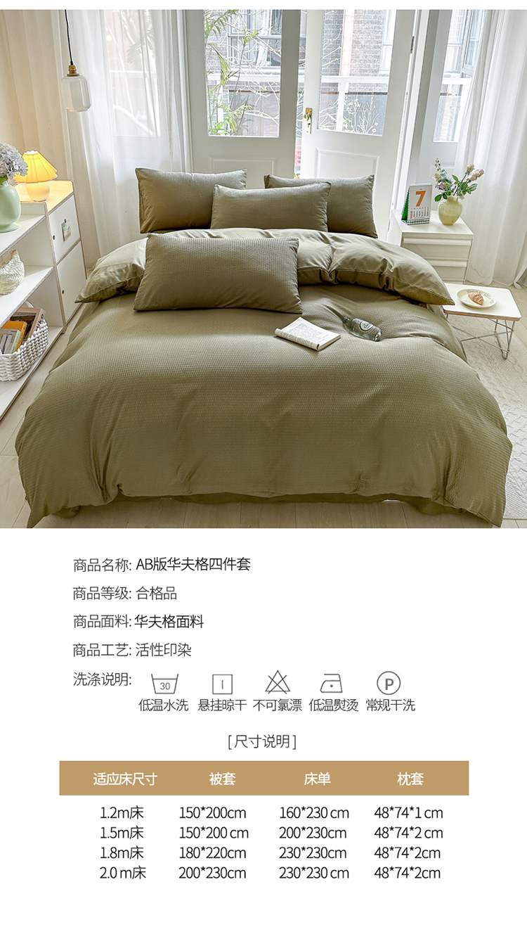 (总)米粒 2022直播爆款纯色AB版华夫格四件套磨毛水洗棉,粉咖,橄榄绿,米兰,米绿,牛仔蓝,浅灰,浅深灰,柔粉玉,水绿,天空蓝,紫咖,紫米