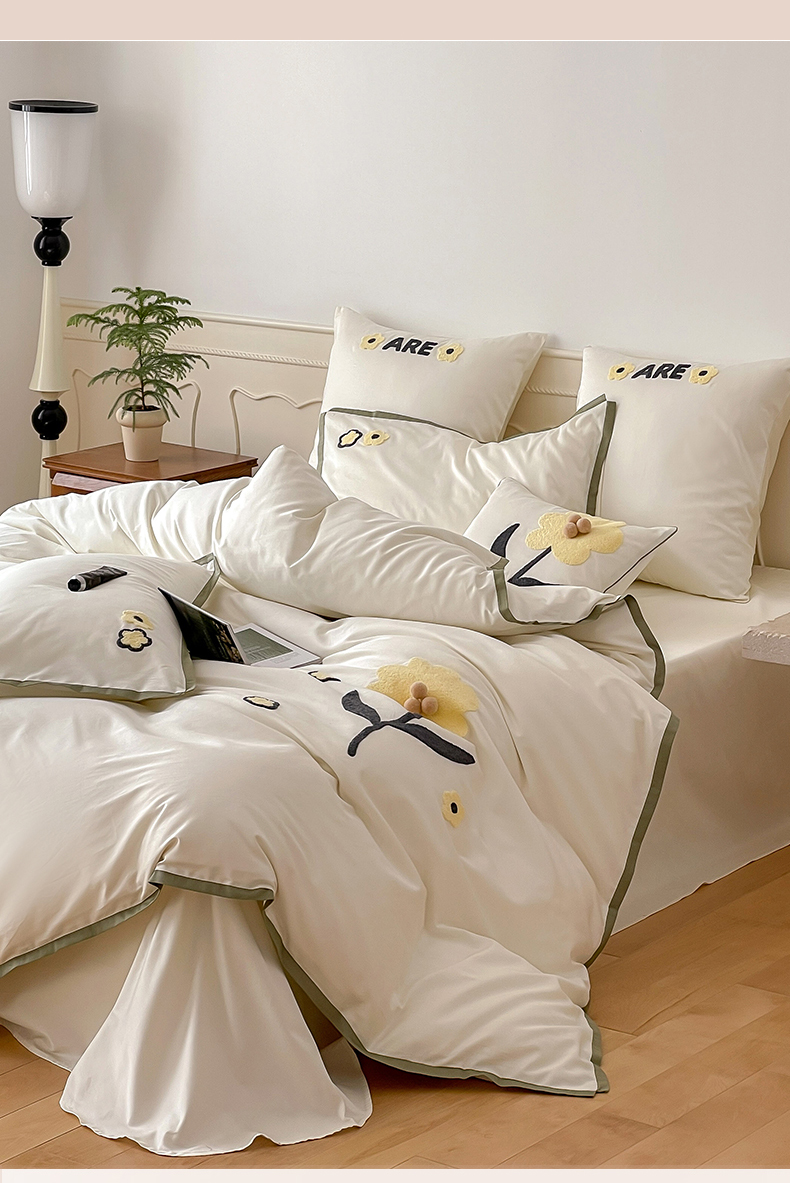 名品优仓2023新款毛巾绣撞色荷叶边四件套 铃兰花开