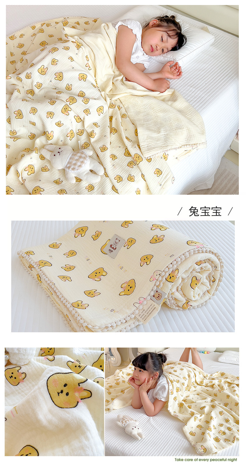 商品名称:麻依 2023新款四层全棉草木染皱皱纱儿童纱布毛巾被包被毯子 兔宝宝