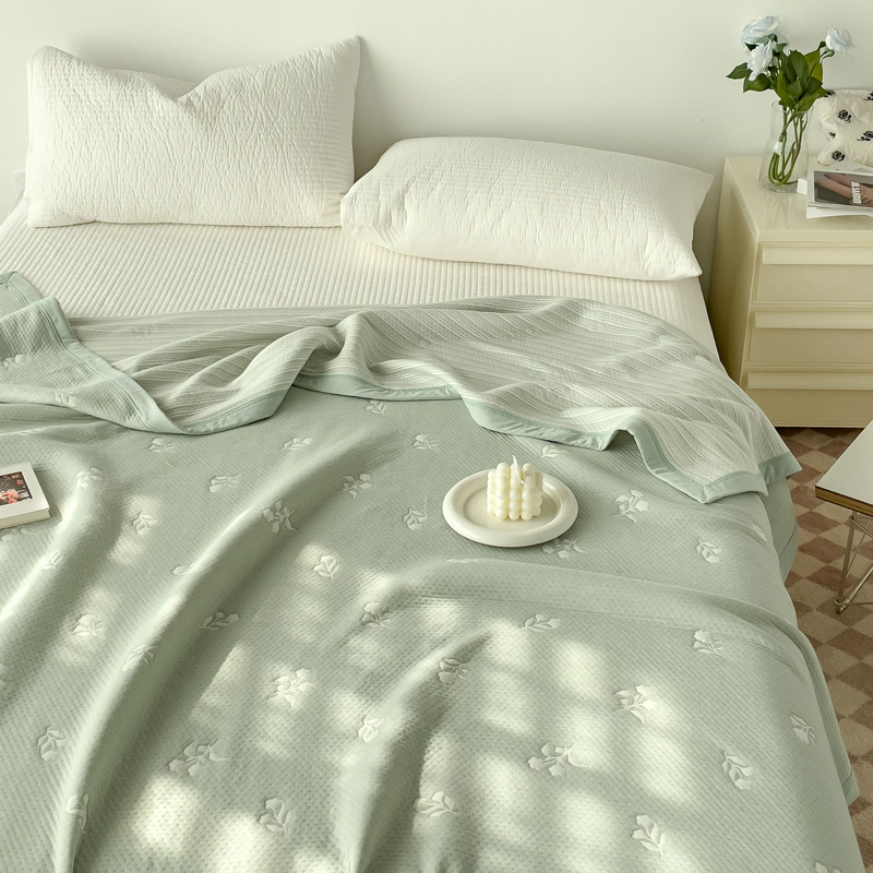 商品名称:爱丽丝 2023新款A类全棉针织提花夏被多功能盖毯 绿色铃兰