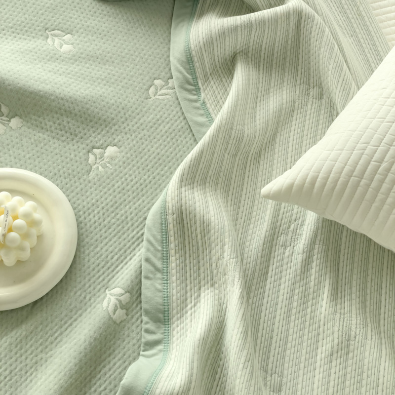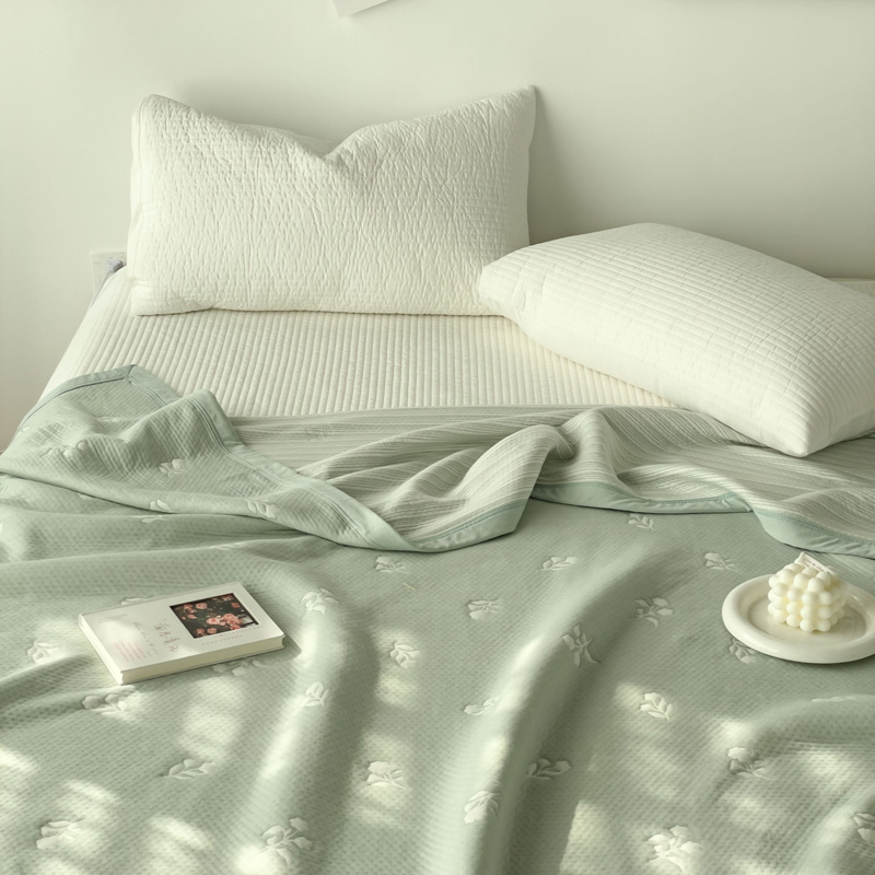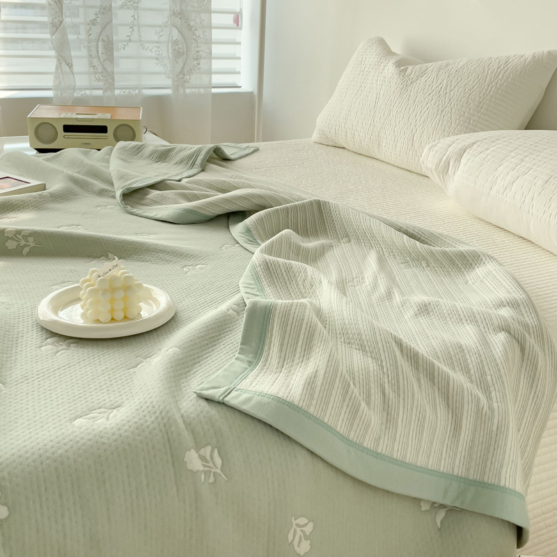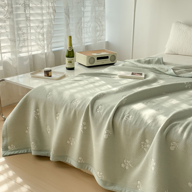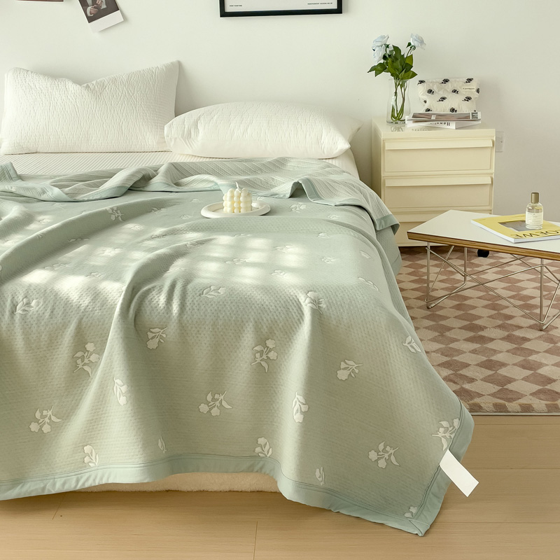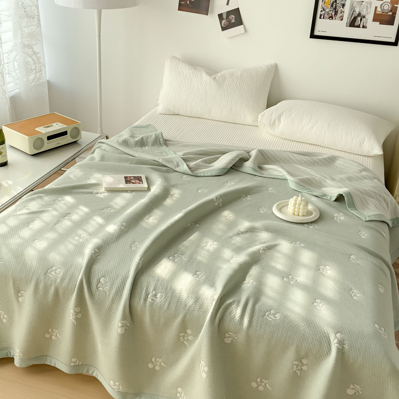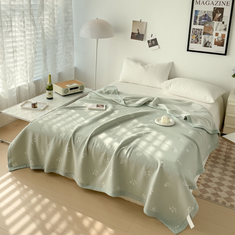 爱丽丝 2023新款A类全棉针织提花夏被多功能盖毯 绿色铃兰