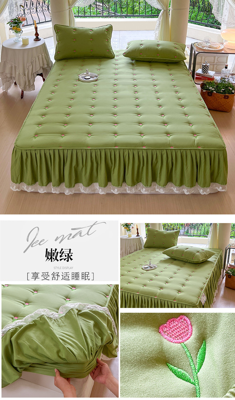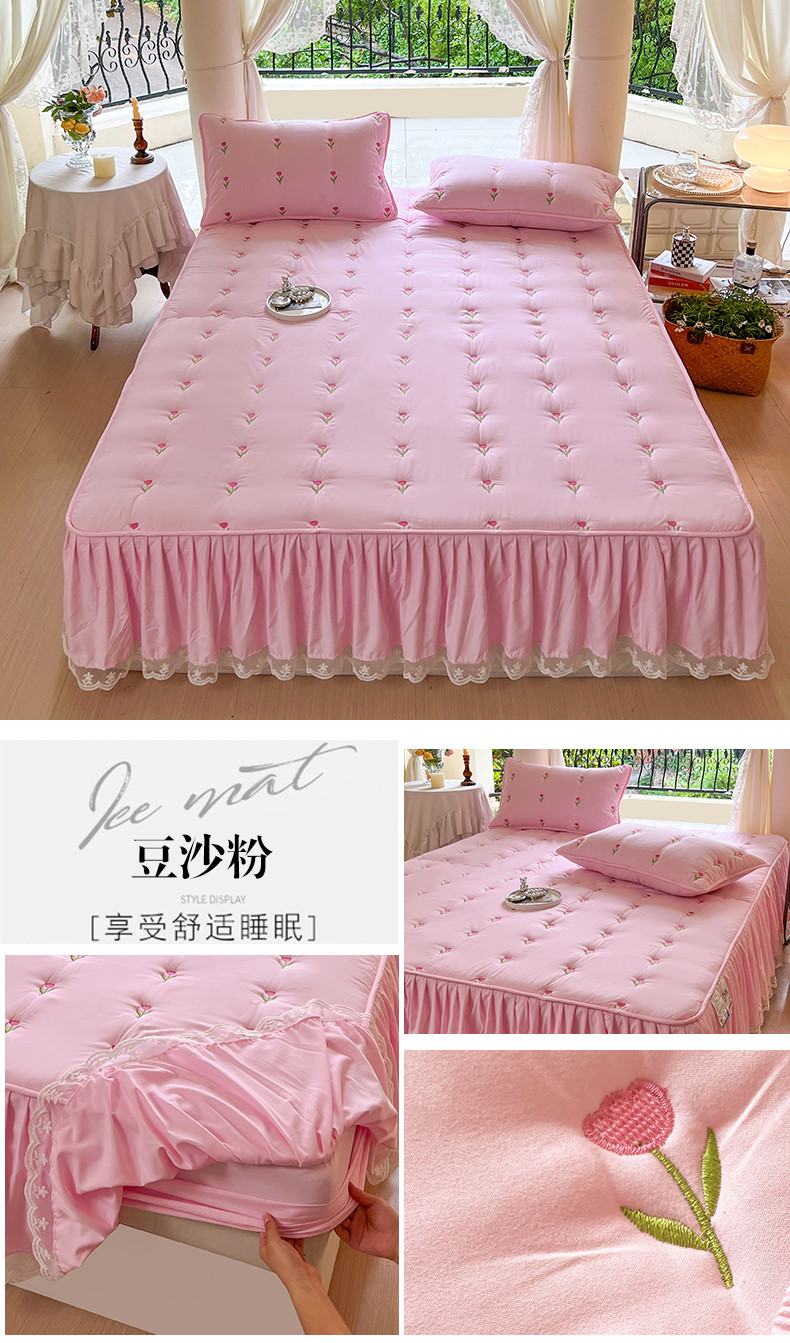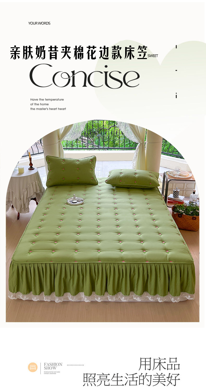尊康家纺(原磊科) 2024新款亲肤奶昔棉夹棉床裙-风雅 风雅-黛粉,风雅-黛粉