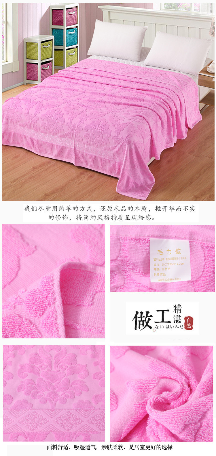 商品名称:悦然 2024新款老式全棉毛巾被夏被 粉色