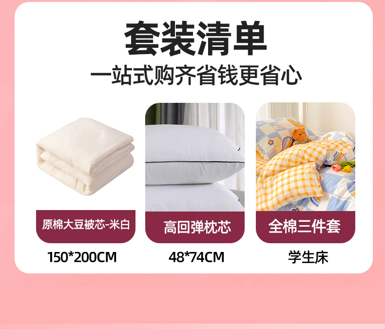 学生床五件套 【三件套+枕芯+秋冬被约5斤】 | ¥148.00 |