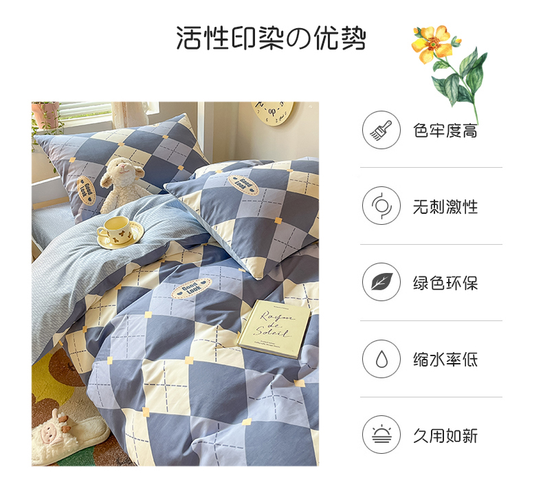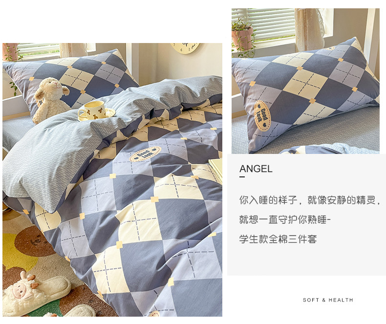 当前位置: 91家纺网 > 商品网购 > 床品套件 > 四件套 > 全棉普通四件套 > 麦伦 2023春夏全棉斜纹学生三件套四件套上下铺床品系列 英伦格蓝