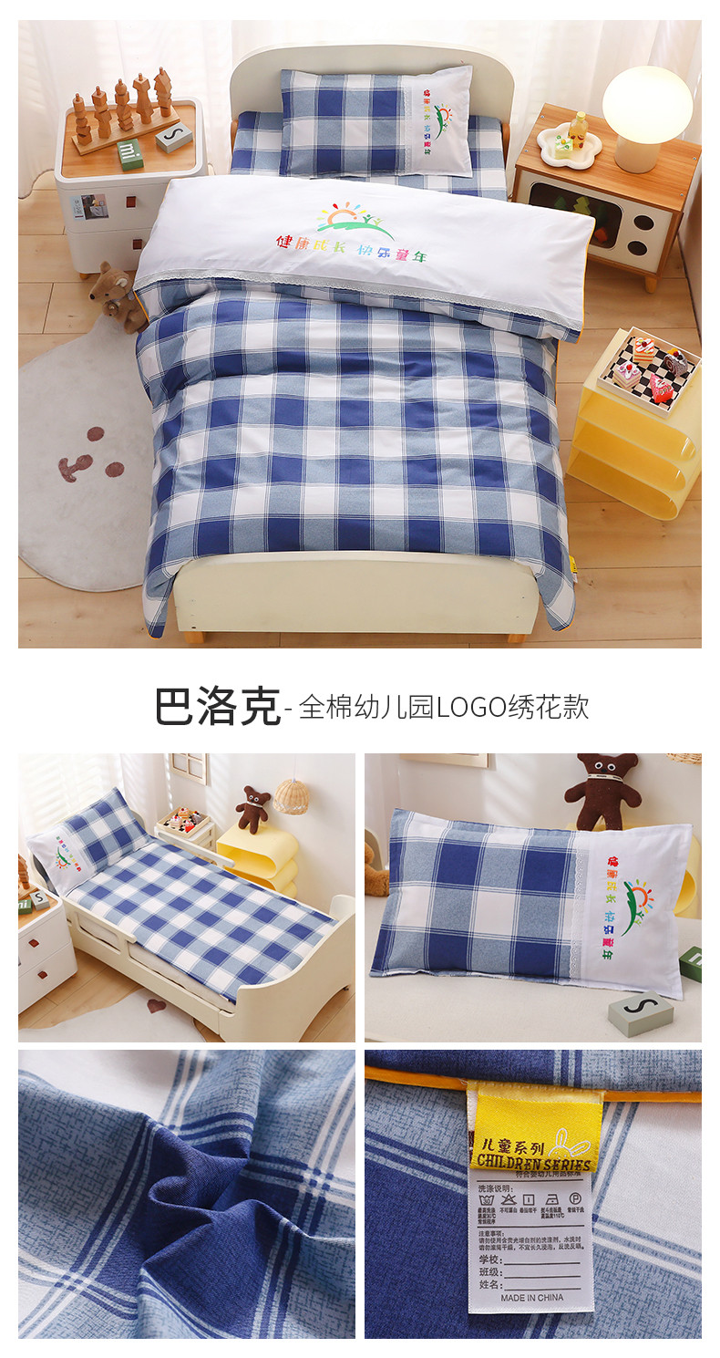 当前位置: 91家纺网 > 商品网购 > 床品套件 > 多件套 > 多件套 > 订做纯色绣花logo纯棉刺绣园标幼儿园被子三件套午睡六件套 巴洛克