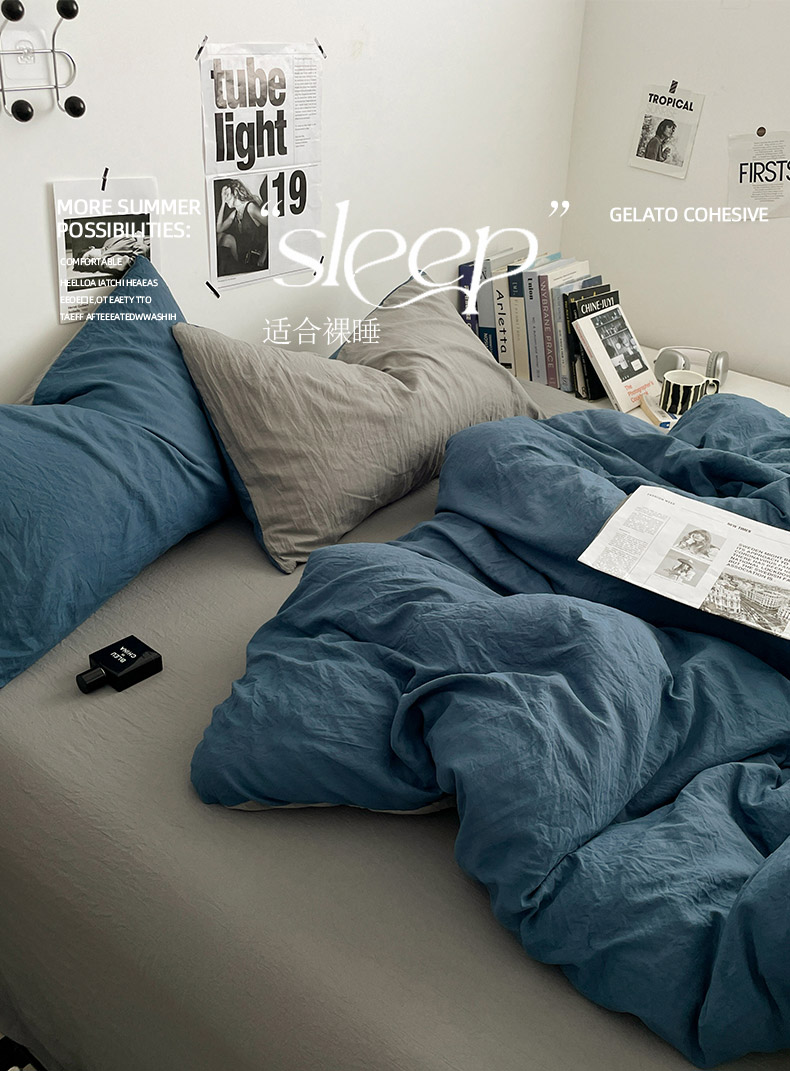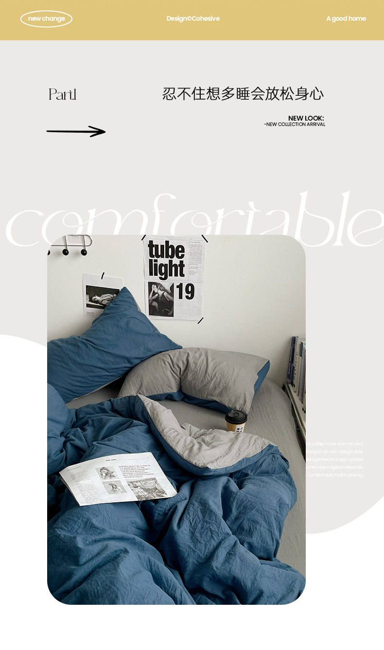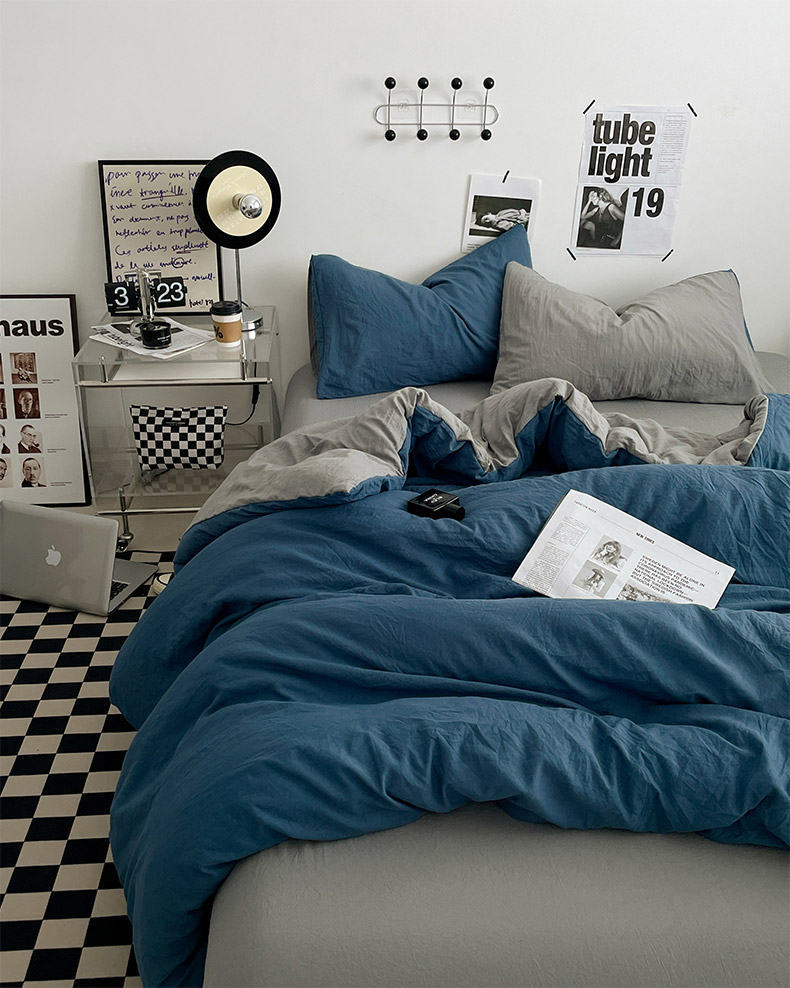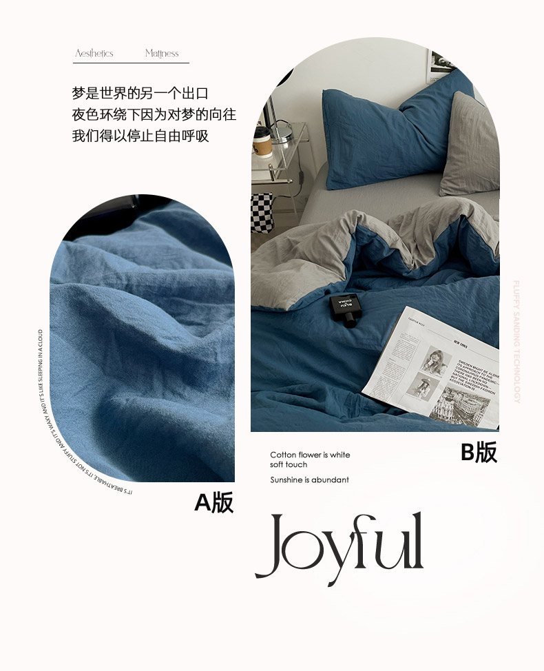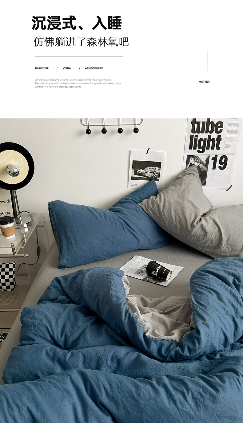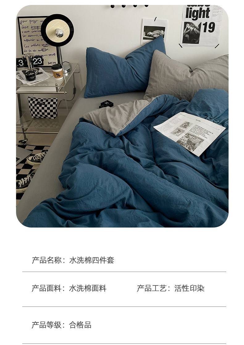当前位置: 91家纺网 > 商品网购 > 床品套件 > 四件套 > 水洗棉四件套 > 优承佳 2023新款ins风超柔亲肤磨毛水洗m双拼四件套 宝蓝浅灰