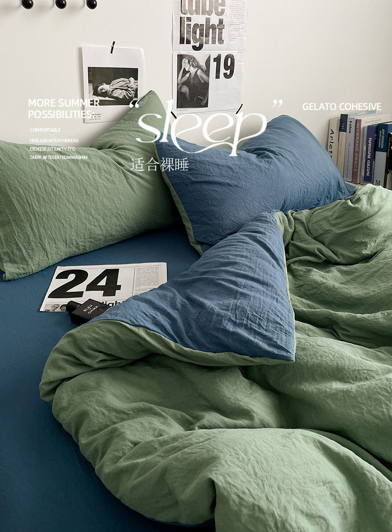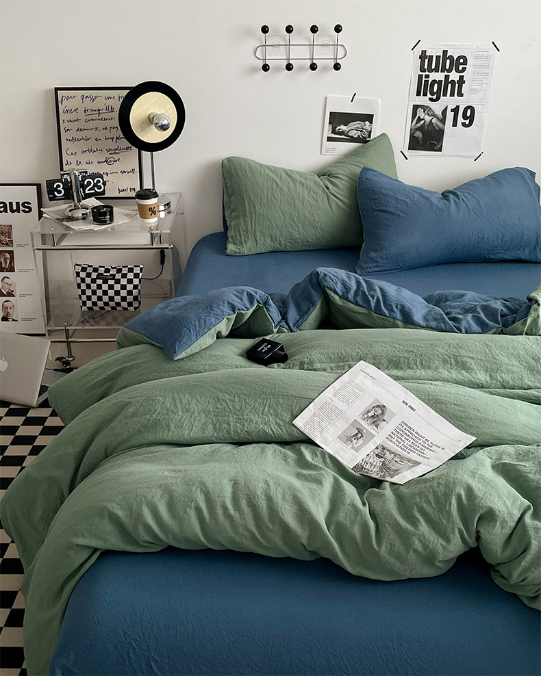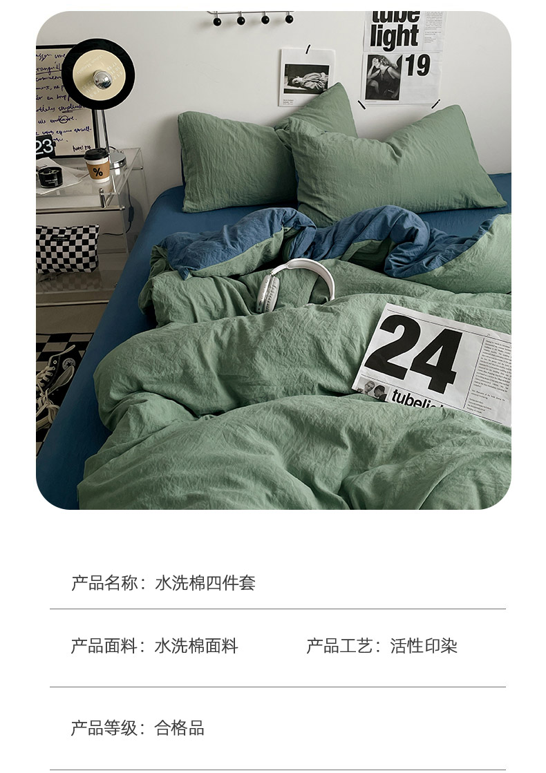 当前位置: 91家纺网 > 商品网购 > 床品套件 > 四件套 > 水洗棉四件套 > 优承佳 2023新款ins风超柔亲肤磨毛水洗m双拼四件套 清新牛仔