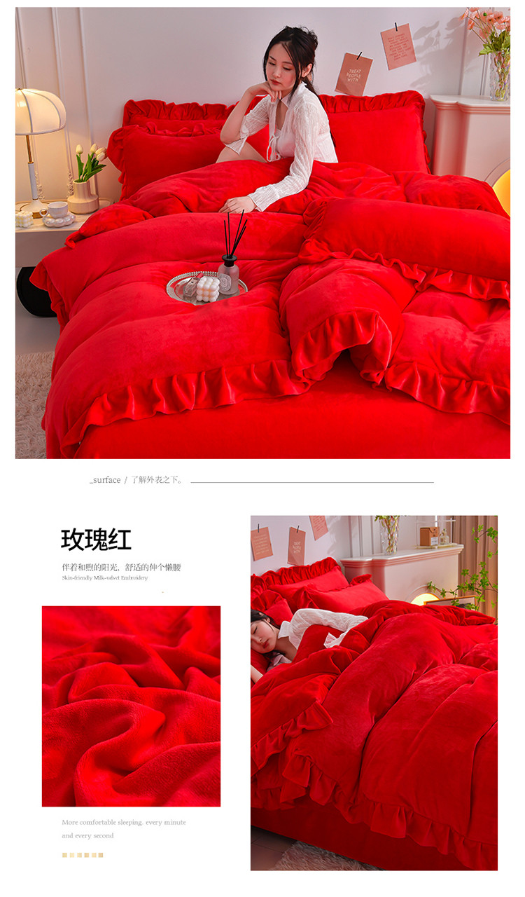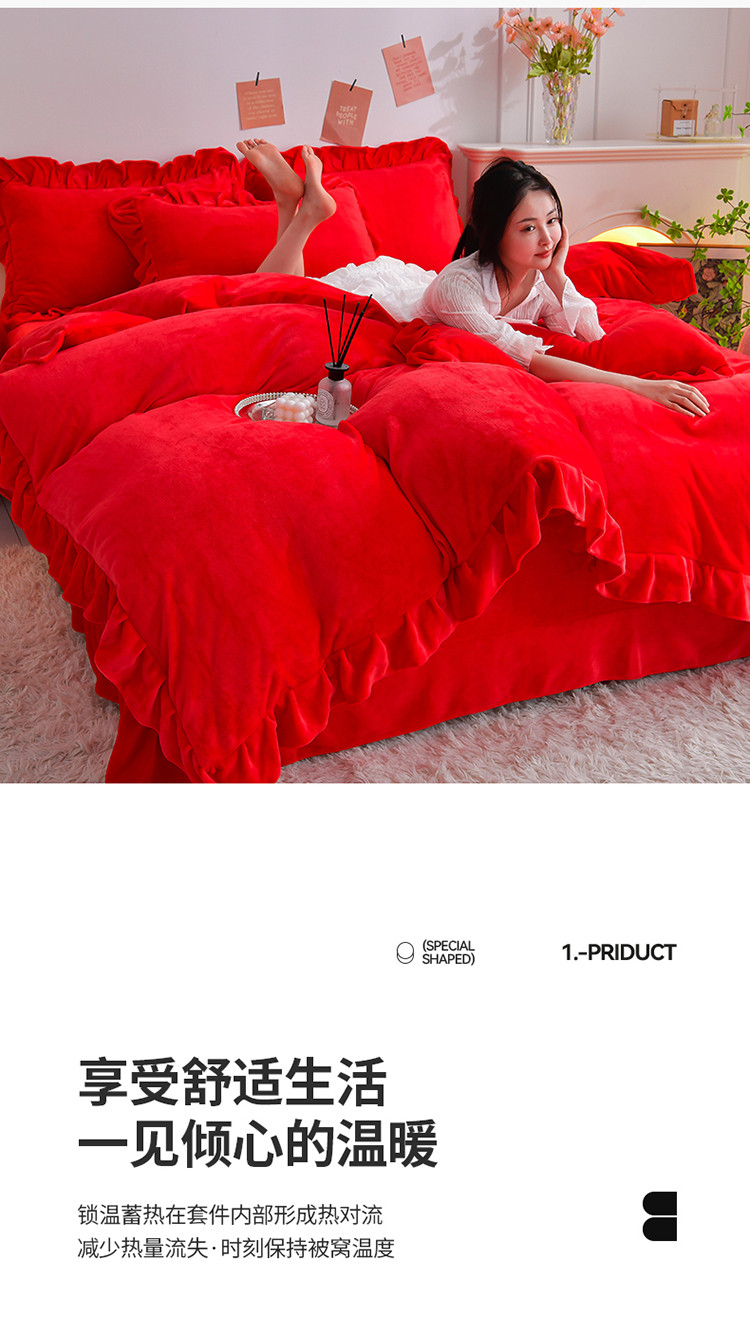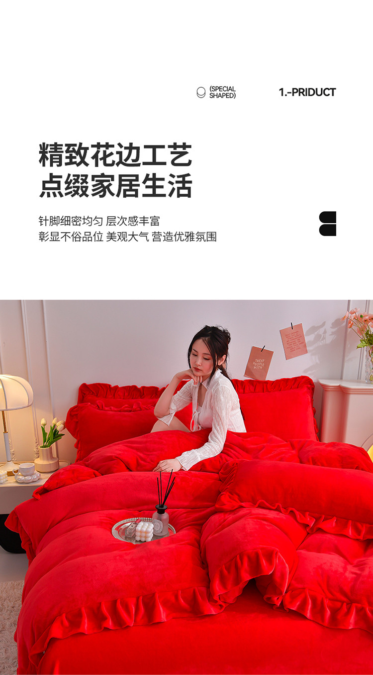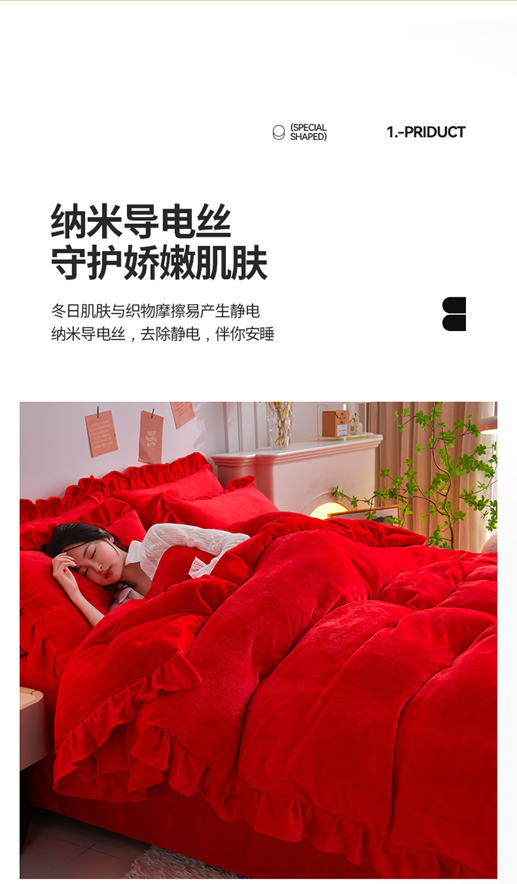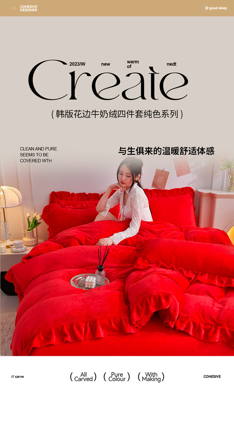 商品名称:妮恒美 2023新款韩版纯色牛奶绒四件套 大红色