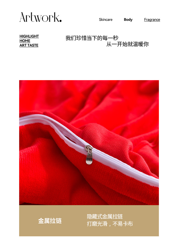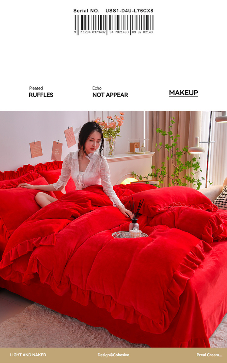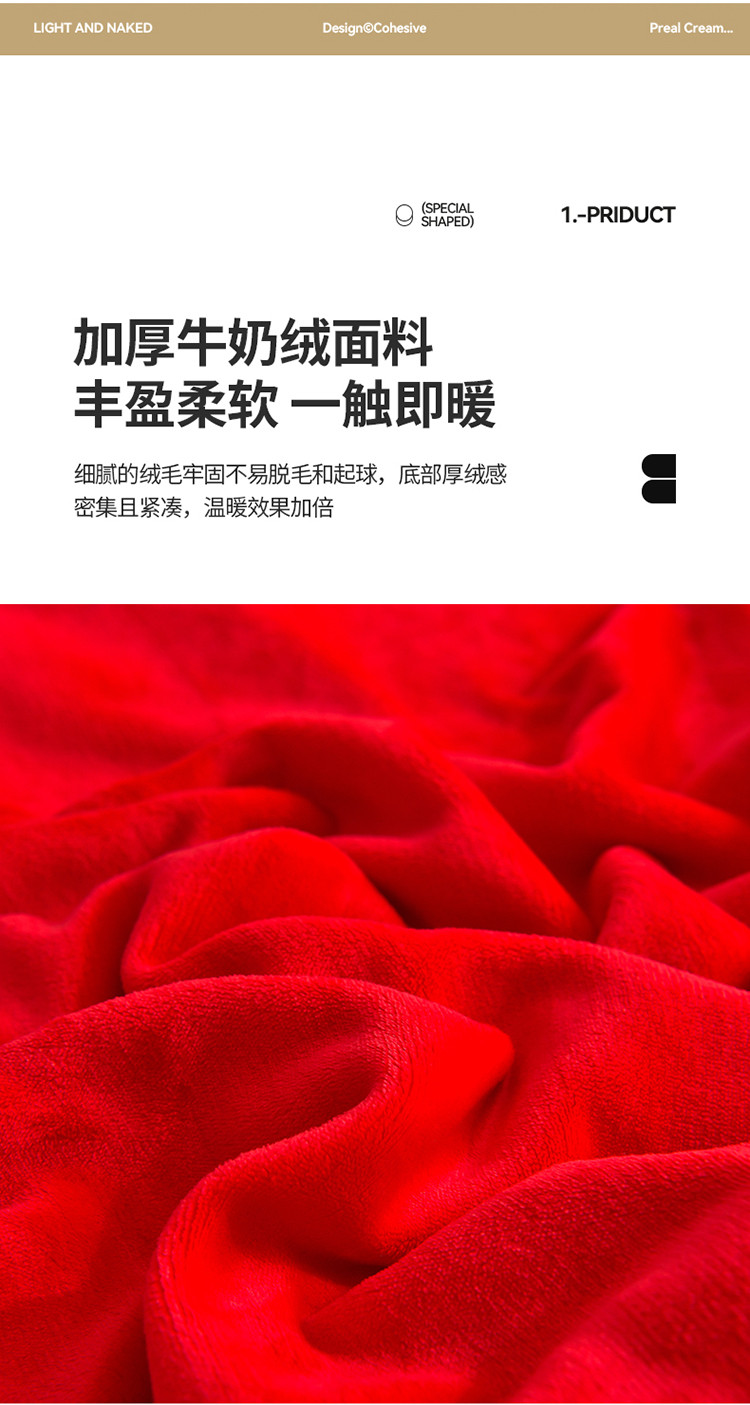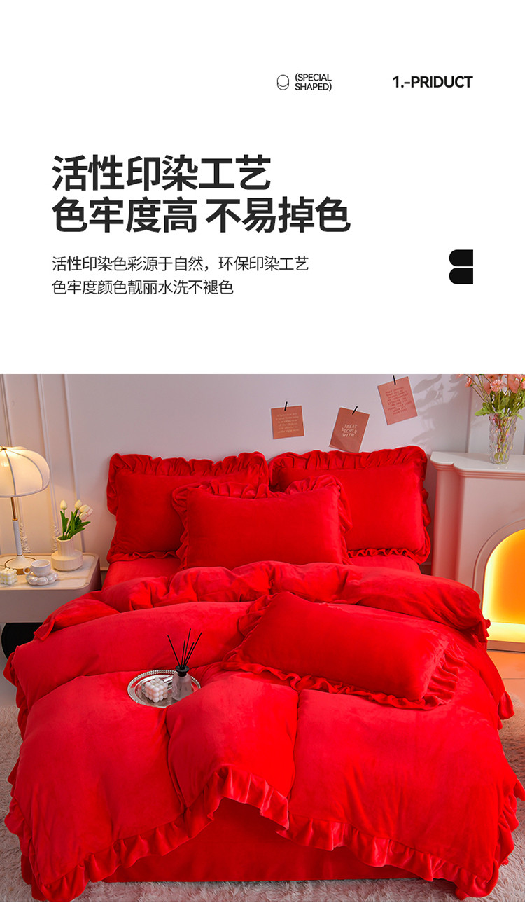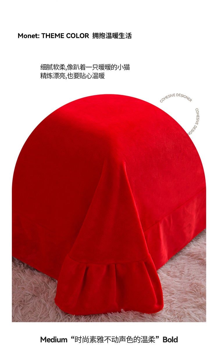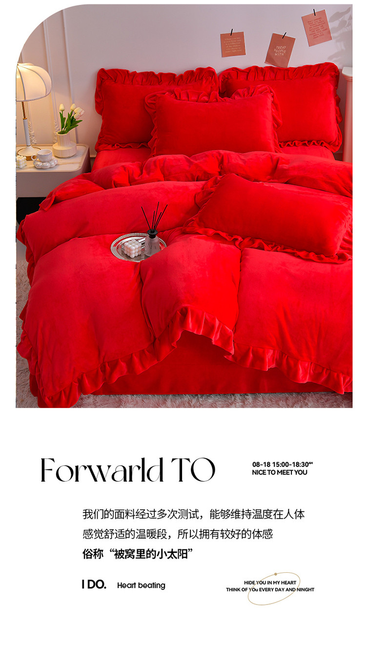 商品名称:妮恒美 2023新款韩版纯色牛奶绒四件套 大红色