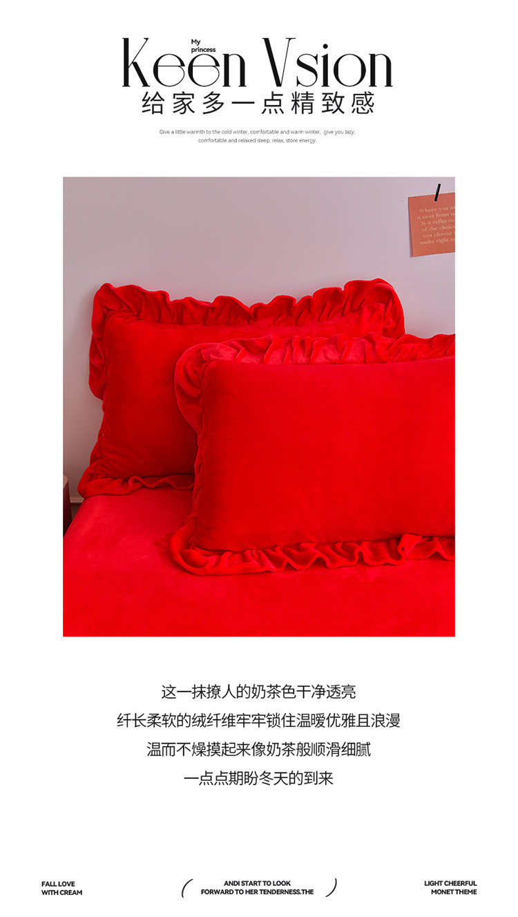 妮恒美 2023新款韩版纯色牛奶绒四件套 大红色