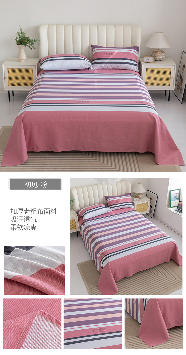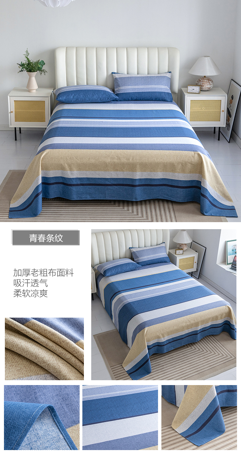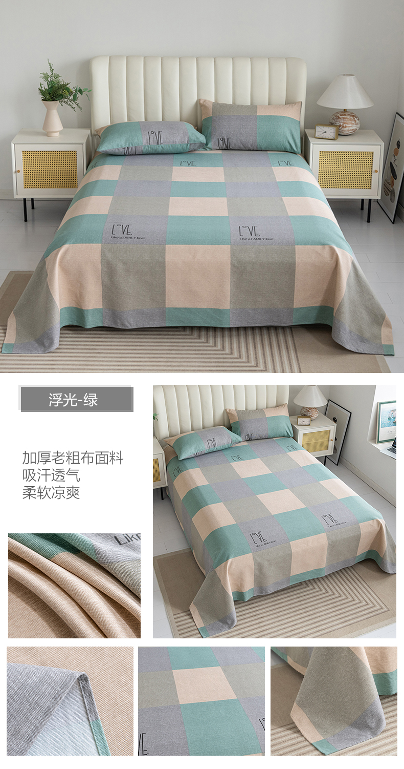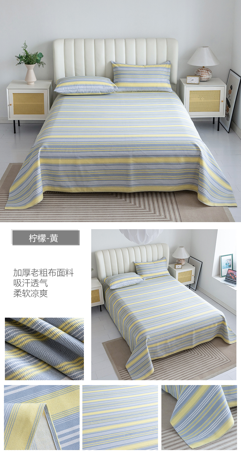 (总)居美良品 2025新款老粗布床单单件老粗布凉席三件套,可爱兔,蓝色花海,浪漫粉,浪漫蓝,条雅樱桃,别具一格,天马行空,初见粉,初见灰,浮光红,浮光绿,清新绿,天空灰,夏日-橙,阳光绿格,阳光蓝格,枇杷印象,沁香花语,青春条纹,布偶熊,彩虹格,草莓兔,芳华绽放,浪漫百合,柠檬-黄,田园小花,幸运-灰