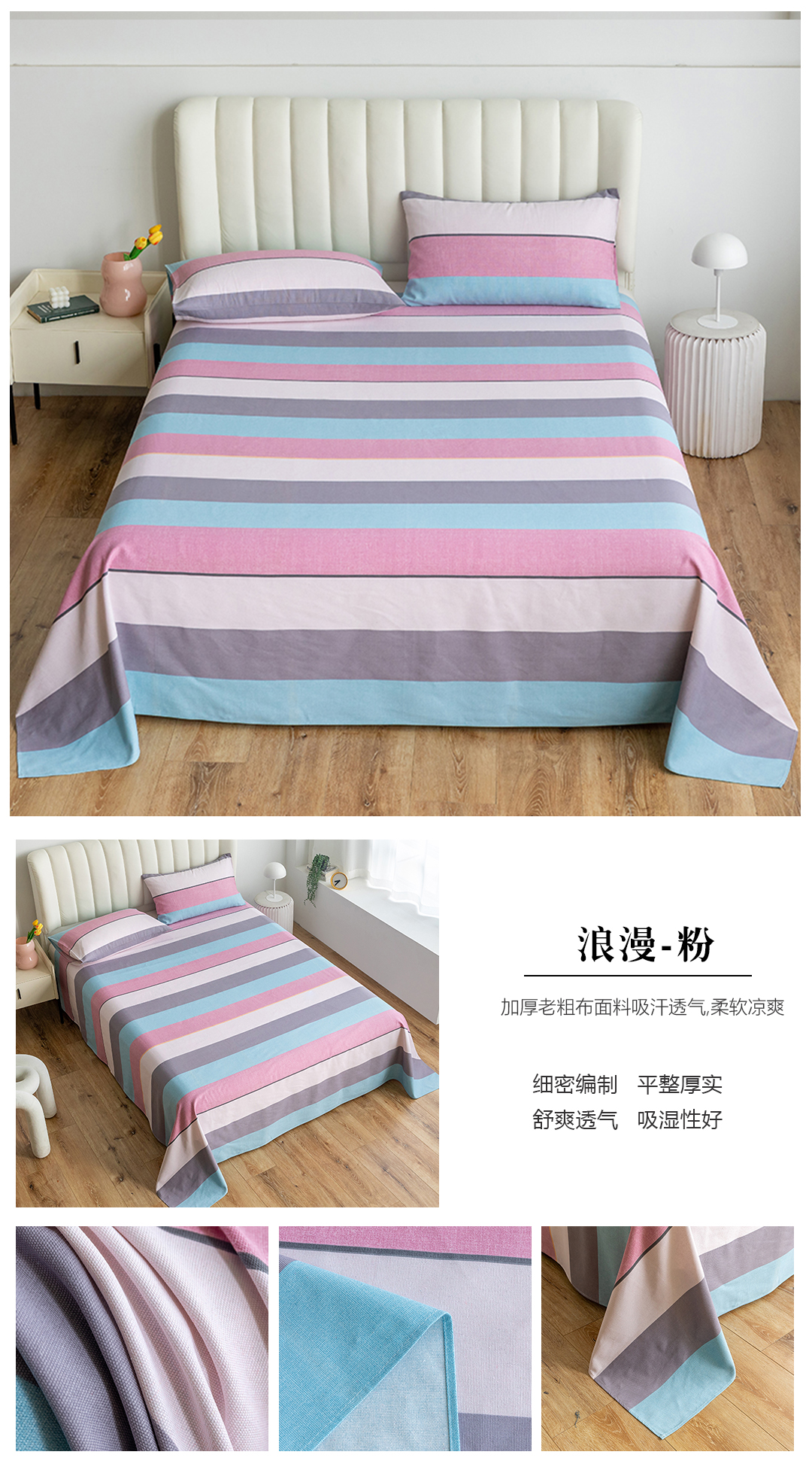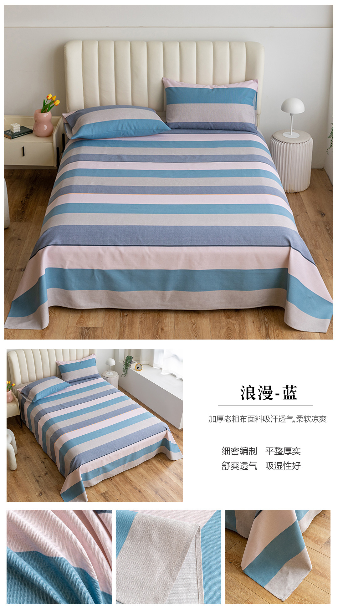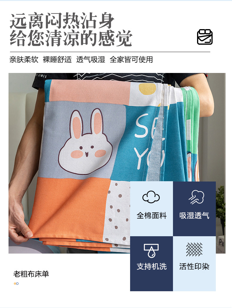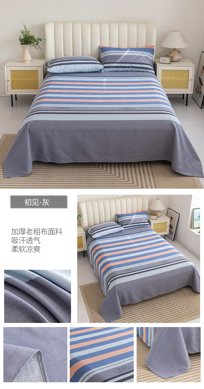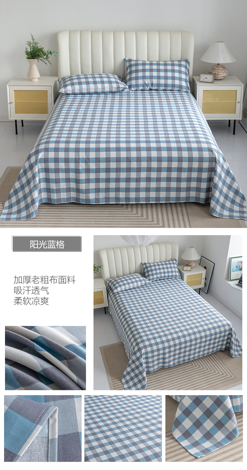 (总)居美良品 2025新款老粗布床单单件老粗布凉席三件套,可爱兔,蓝色花海,浪漫粉,浪漫蓝,条雅樱桃,别具一格,天马行空,初见粉,初见灰,浮光红,浮光绿,清新绿,天空灰,夏日-橙,阳光绿格,阳光蓝格,枇杷印象,沁香花语,青春条纹,布偶熊,彩虹格,草莓兔,芳华绽放,浪漫百合,柠檬-黄,田园小花,幸运-灰