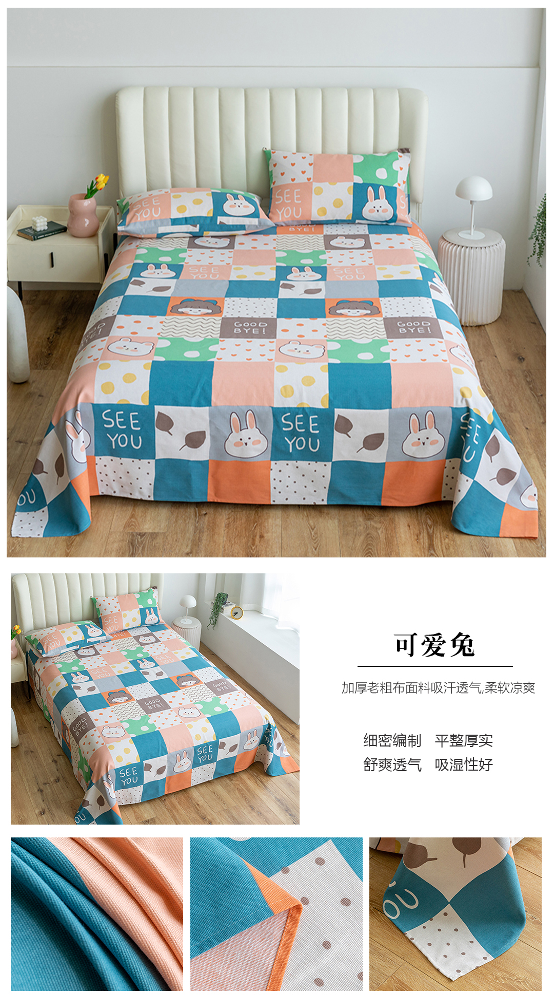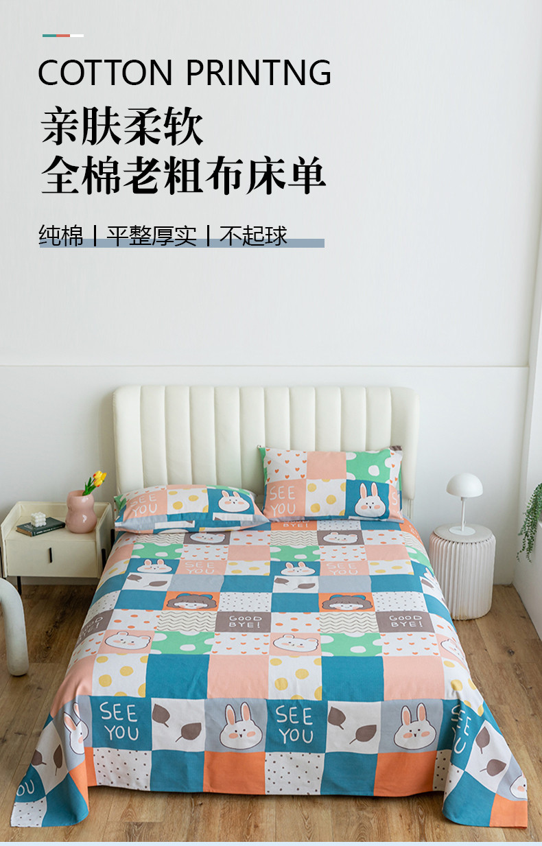 (总)2025新款老粗布卡通花卉床单系列-单床单,竹趣,爱心花朵,朵朵兔,花园熊,滑板狗,酷酷熊,绿意盎然,莓影缤纷,萌宠乐园,诗意花坊,恬静,童梦乐园,熊猫宝贝,绚丽,幽雅