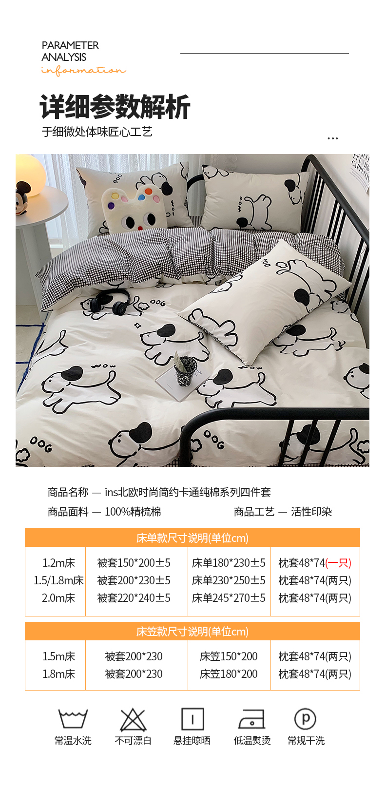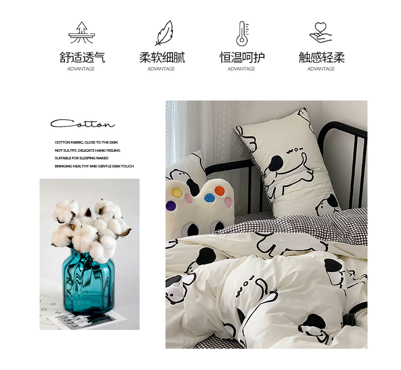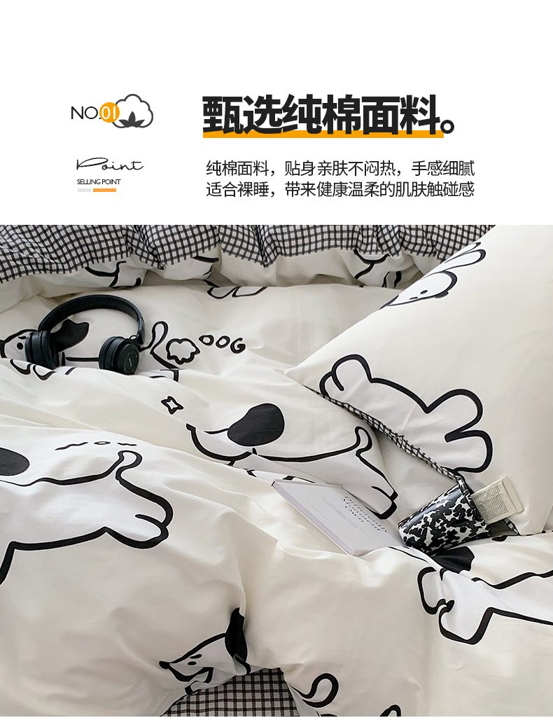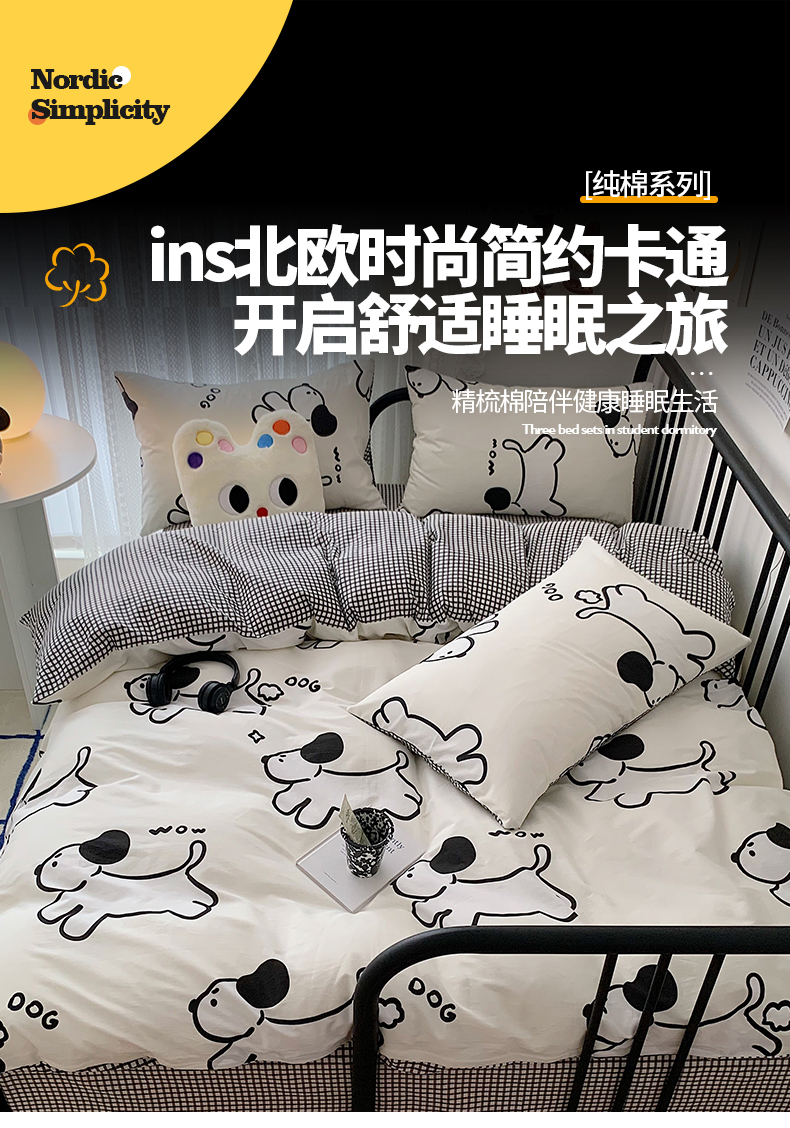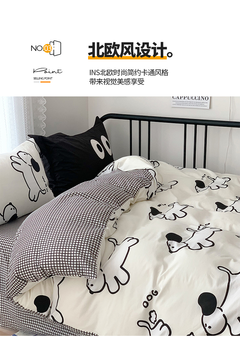 商品名称:桃子家居 2023新款ins北欧时尚简约卡通纯棉四件套系列 棉-欢乐小狗