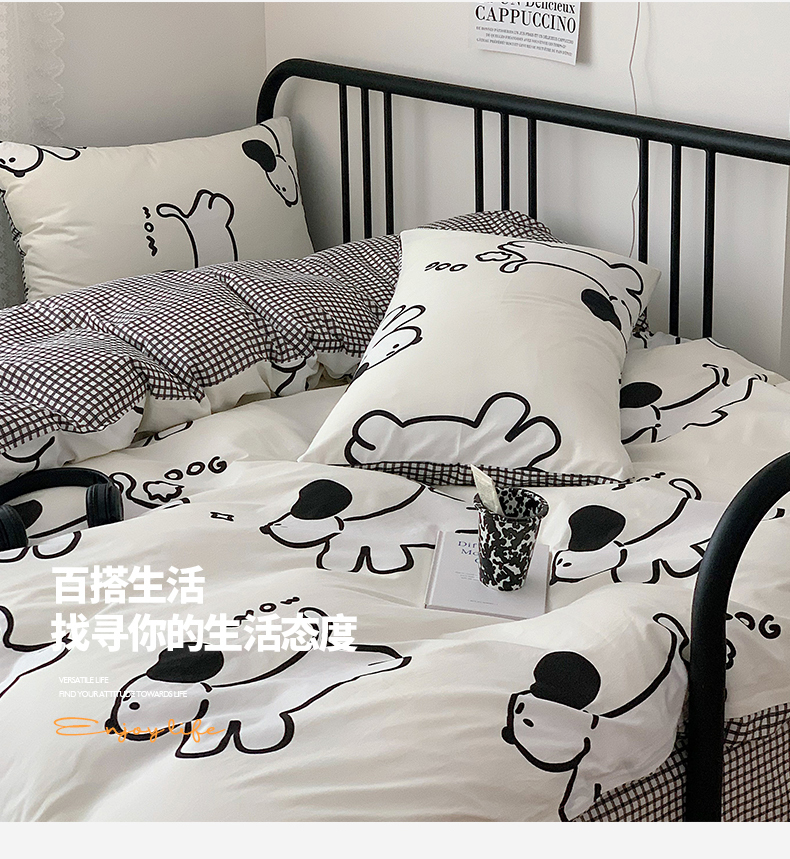 桃子家居 2023新款ins北欧时尚简约卡通纯棉四件套系列 棉-欢乐小狗