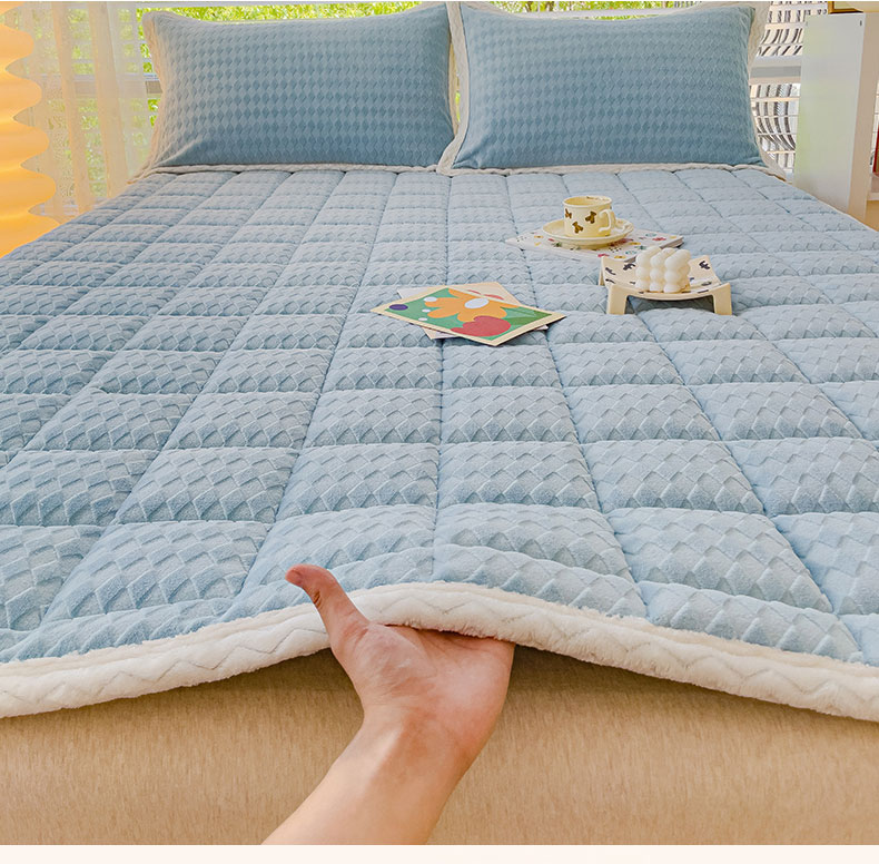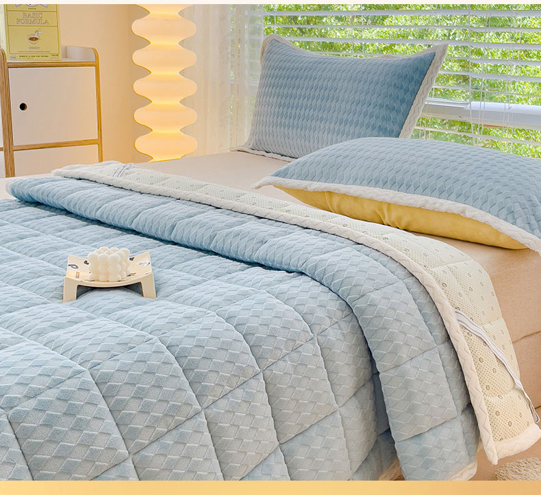 商品名称:米帛 2023新款牛奶绒烂花软垫 菱形蓝