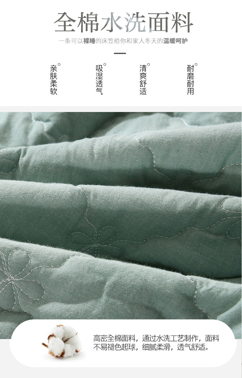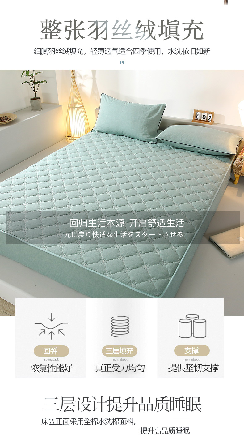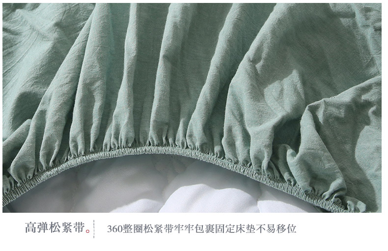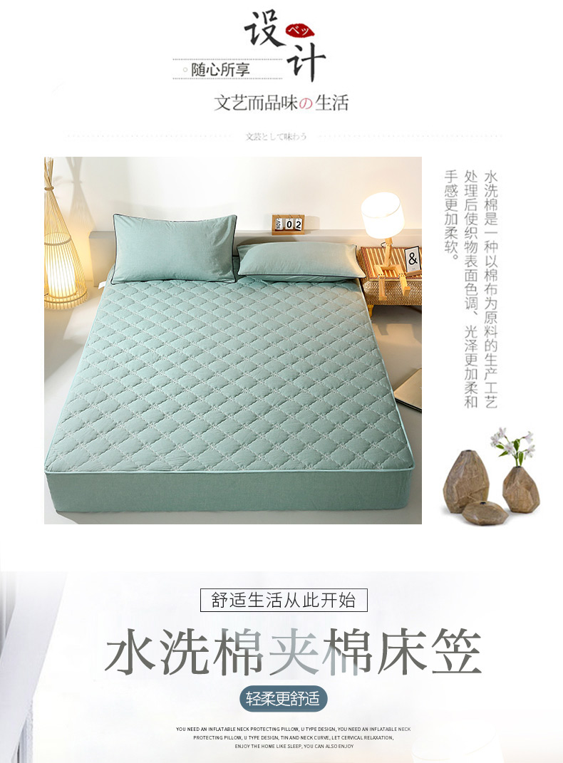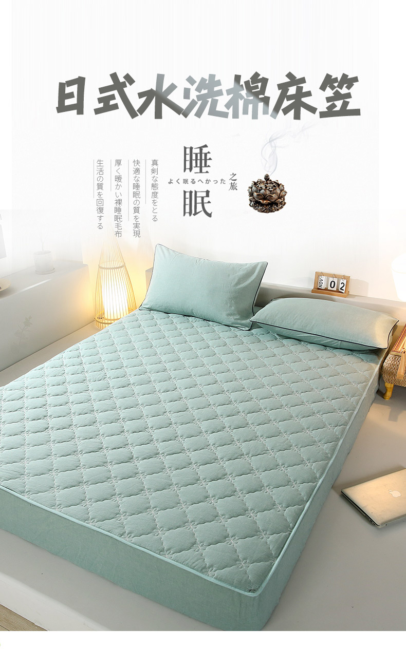 商品名称:胜权家纺 2024新款日式全棉色织水洗棉夹棉床笠 兰绿