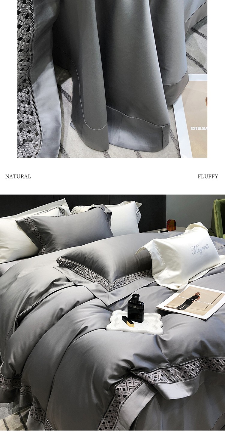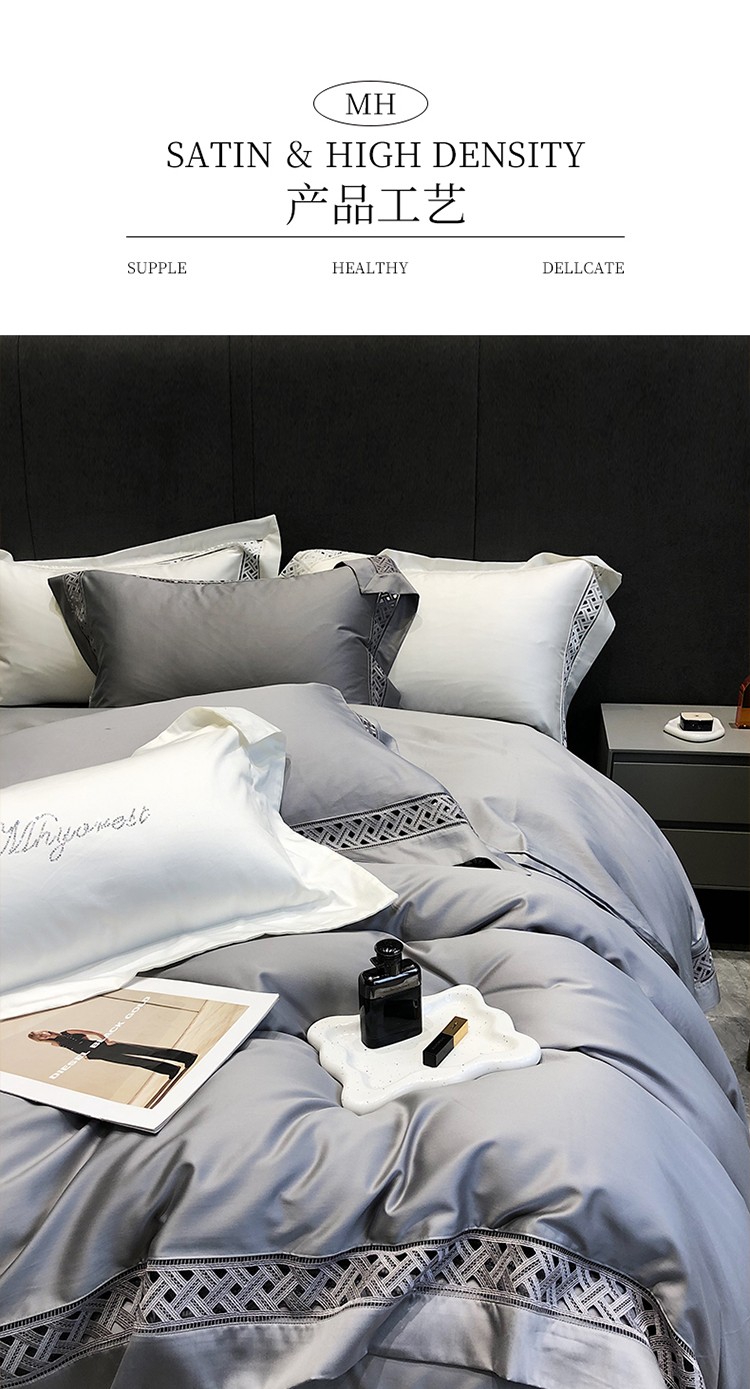 (总)黑白森林2024款 80X80S高支天丝棉四件套镂空蕾丝花边天丝全棉,尚美-晨夕粉,尚美-古象白,尚美-青砂绿,尚美-银雪灰