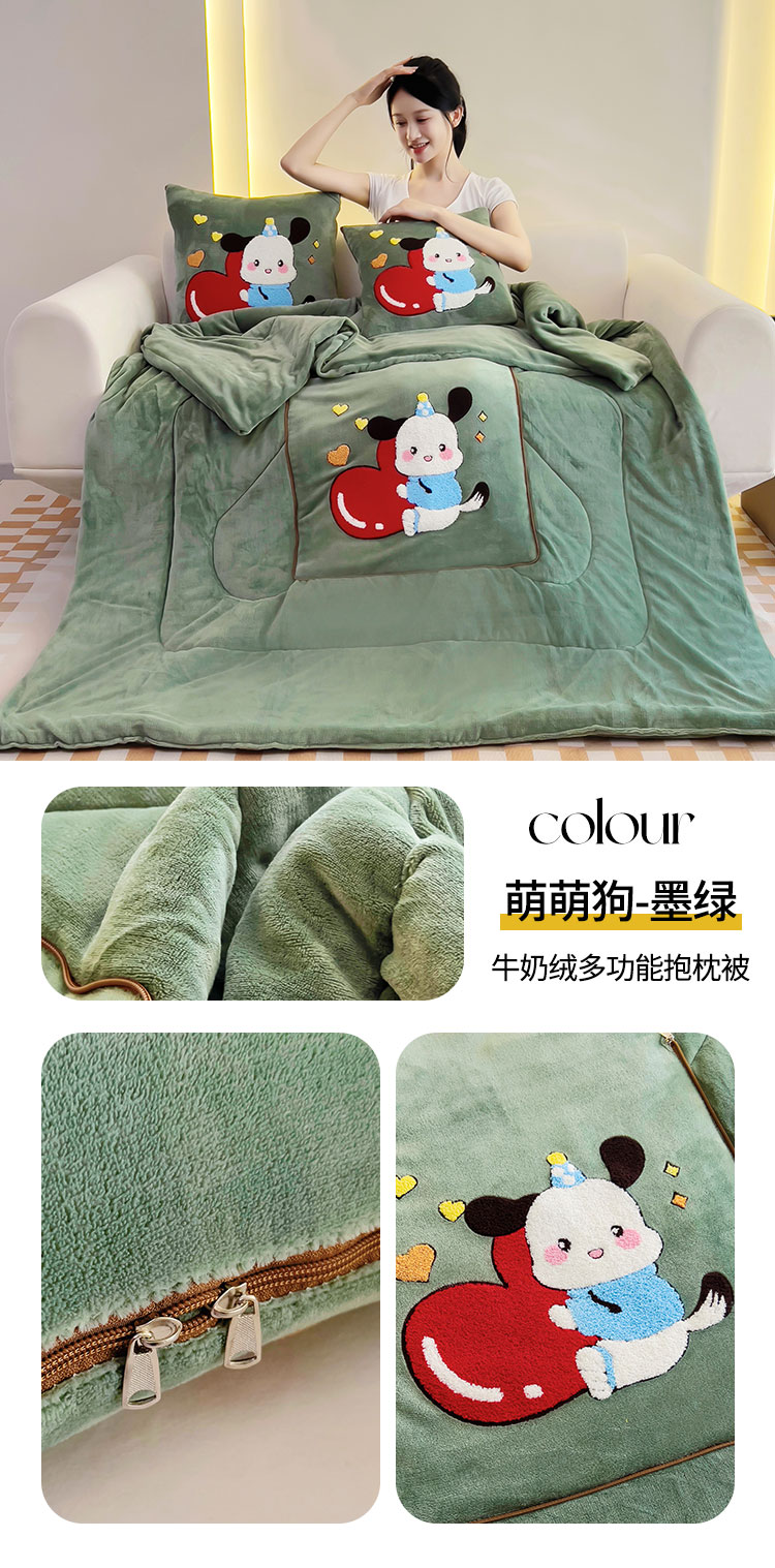 (总)阳光依佰抱枕被 2025秋冬新款牛奶绒多功能抱枕被系列-调皮狗,调皮狗---薄荷绿,调皮狗---浅蓝色,调皮狗---丁香紫,调皮狗---孔雀绿,调皮狗---神秘黑,调皮狗---西瓜红,调皮狗---樱花粉