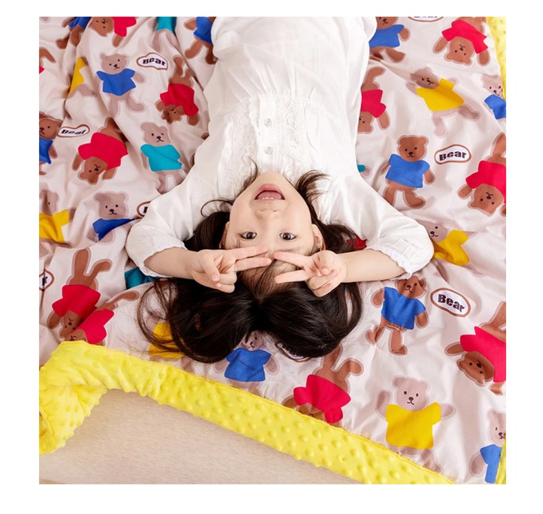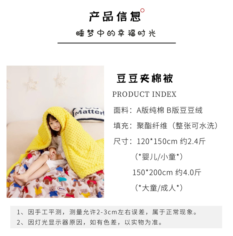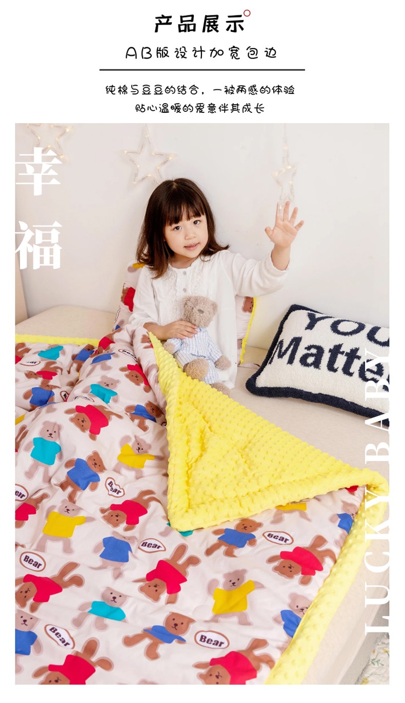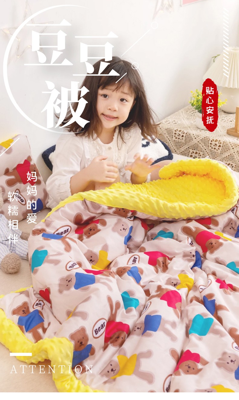 商品名称:十九色 2024新款儿童全棉豆豆被春秋被冬被婴幼儿安抚毯被子 糖果熊