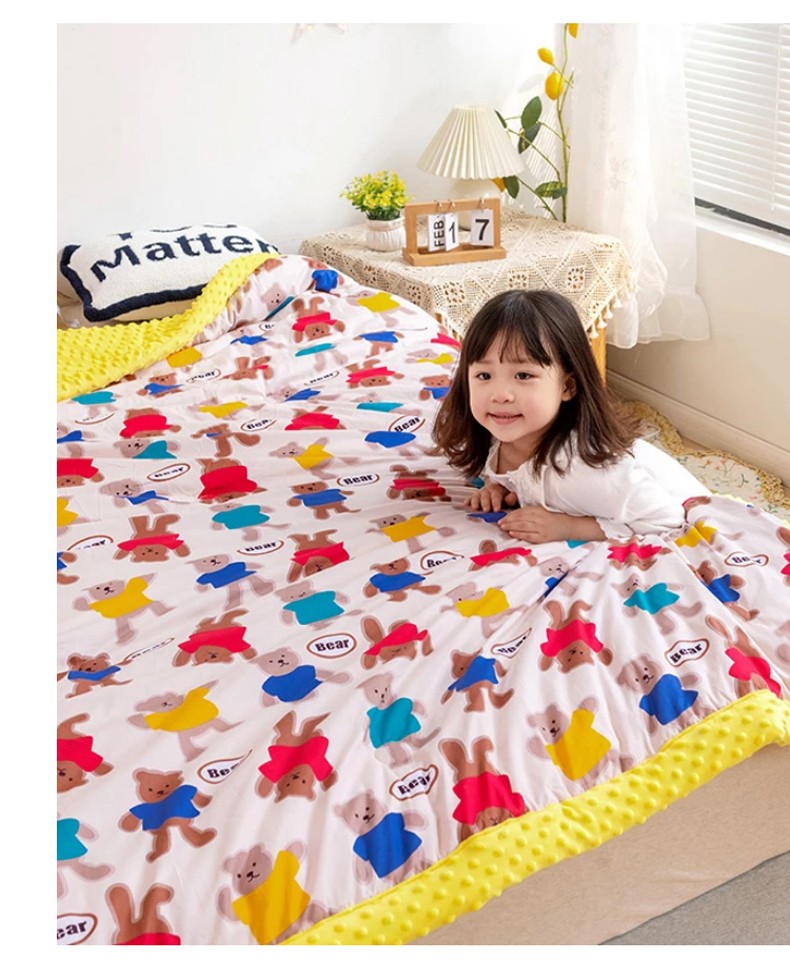 十九色 2024新款儿童全棉豆豆被春秋被冬被婴幼儿安抚毯被子 糖果熊