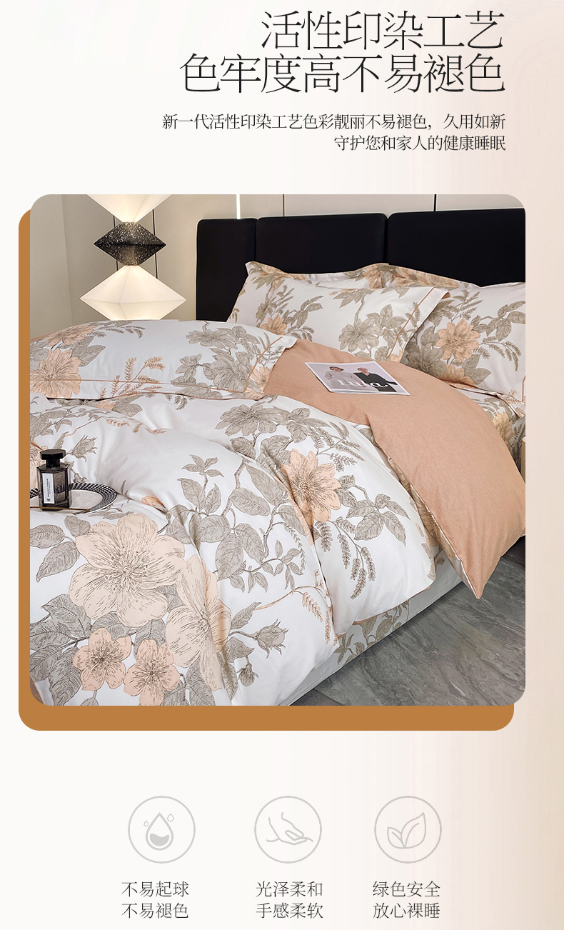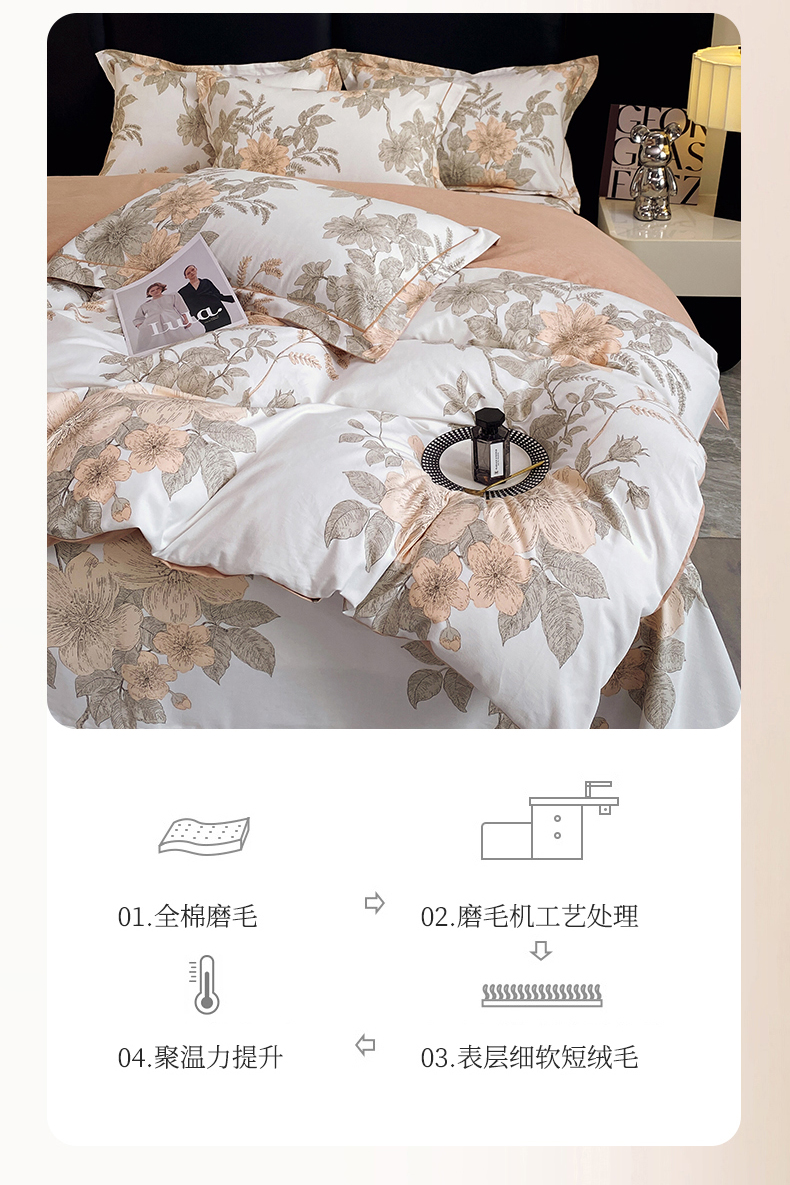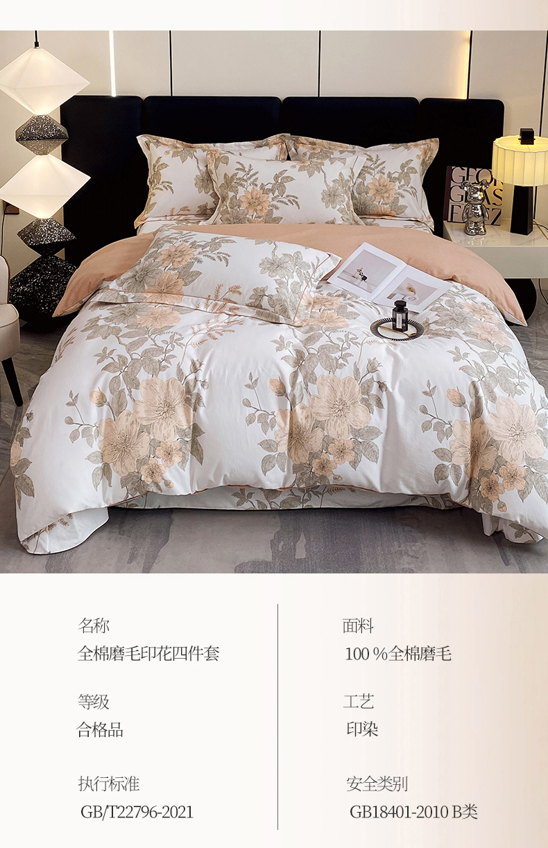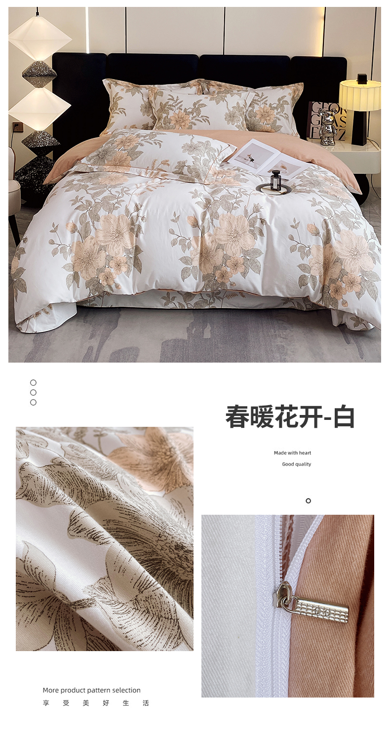 当前位置: 91家纺网 > 商品网购 > 床品套件 > 四件套 > 普通磨毛四件套 > 宝齐莱家纺 2023新款全棉磨毛四件套 春暖花开-白