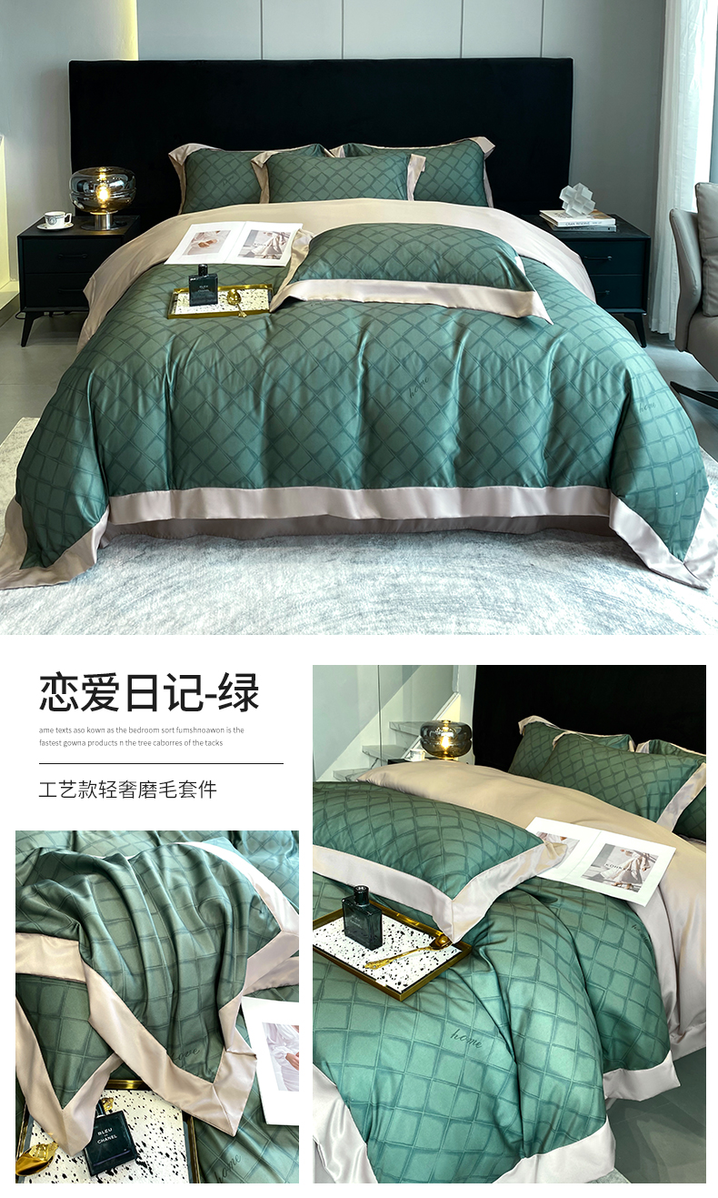 商品名称:优悦 2023新款轻奢磨毛印花系列四件套 恋爱日记-绿