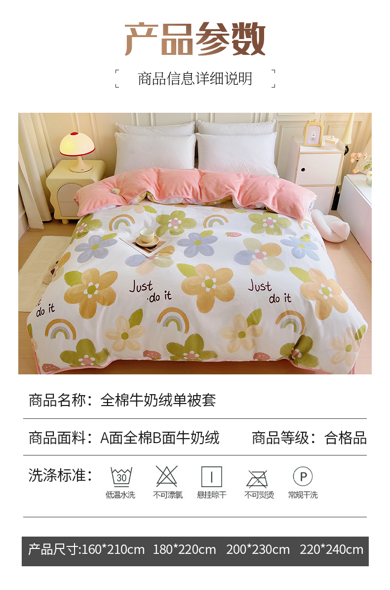 商品名称:琪琪阁 2023新款全棉加牛奶绒单被套 悠然