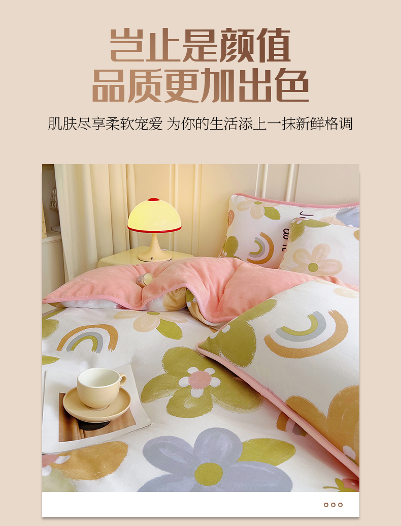 琪琪阁 2023新款A棉B绒棉加绒牛奶绒四件套单被套 宁静生活,宁静生活