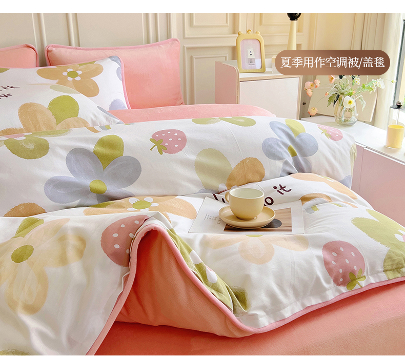 琪琪阁 2023新款A棉B绒棉加绒牛奶绒四件套单被套 笑脸草莓,笑脸草莓