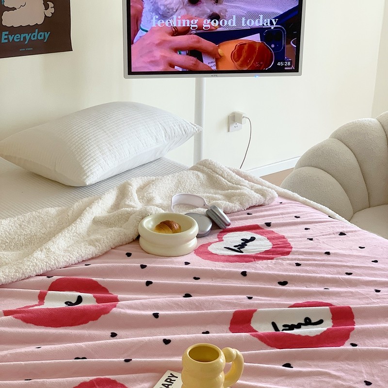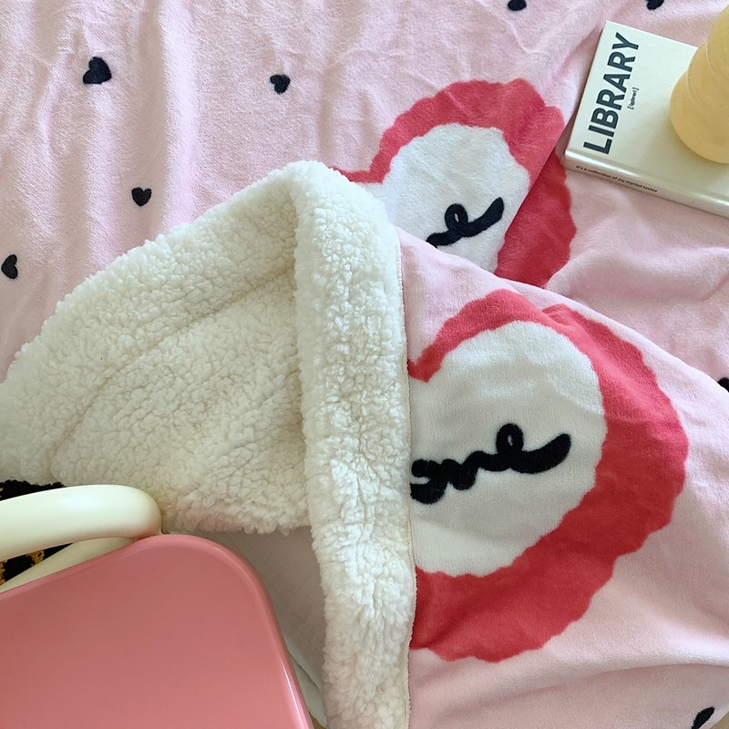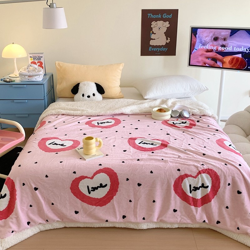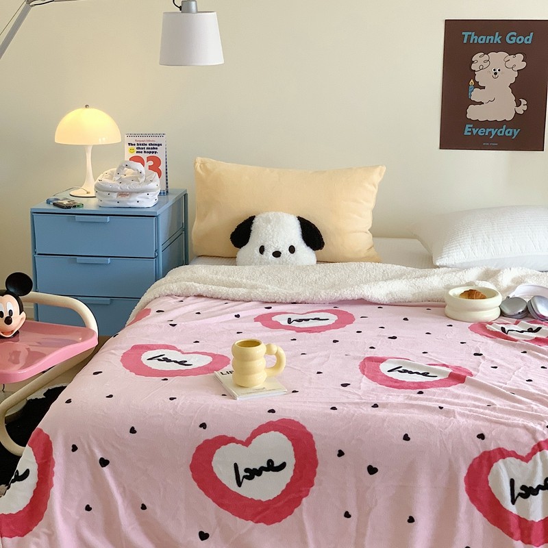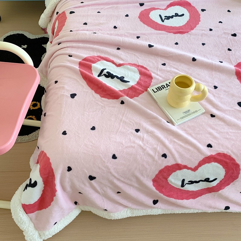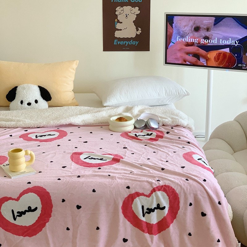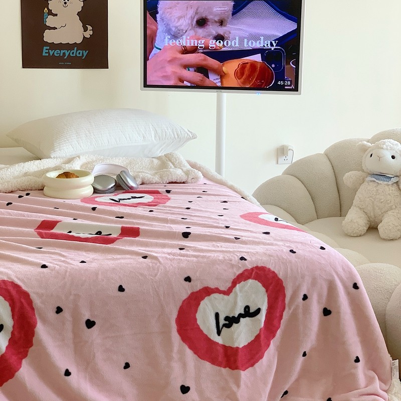 美乐迪 2023新款牛奶绒毛毯 粉爱心