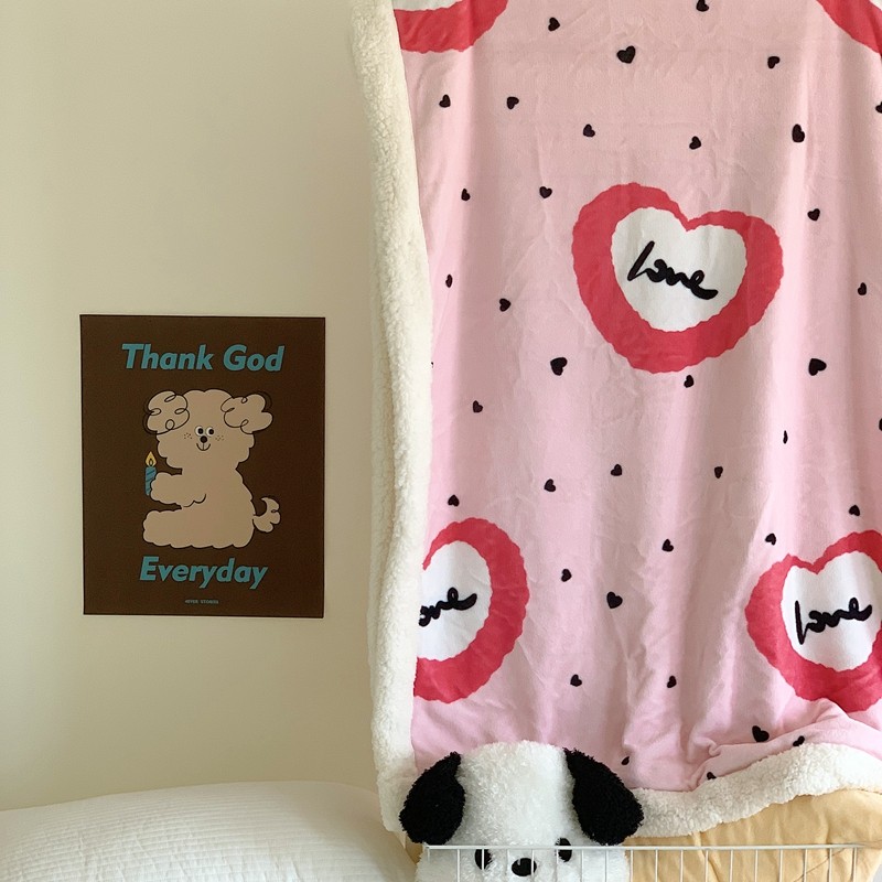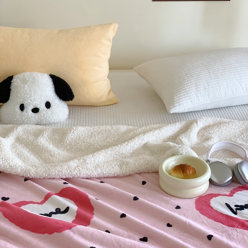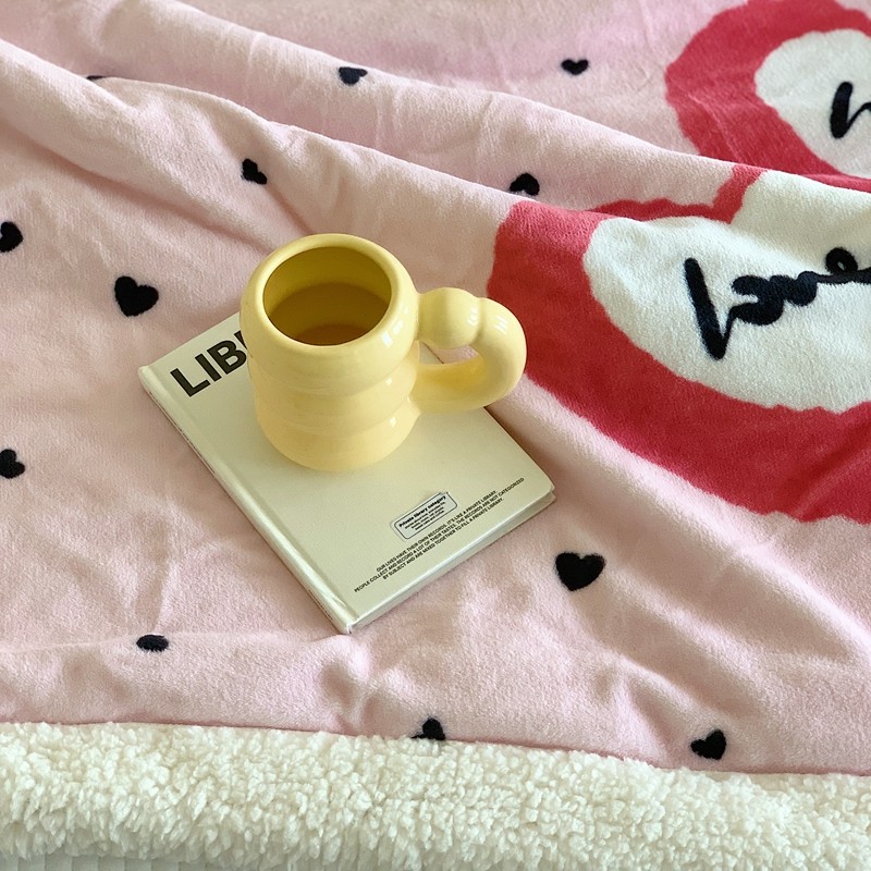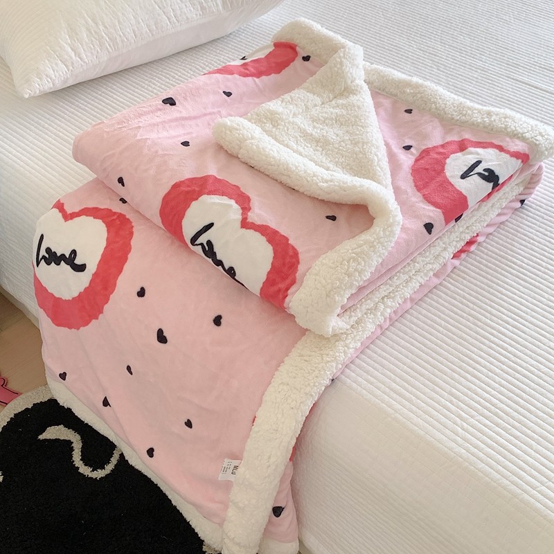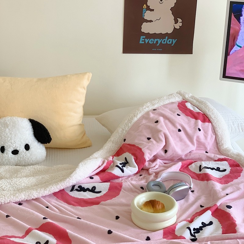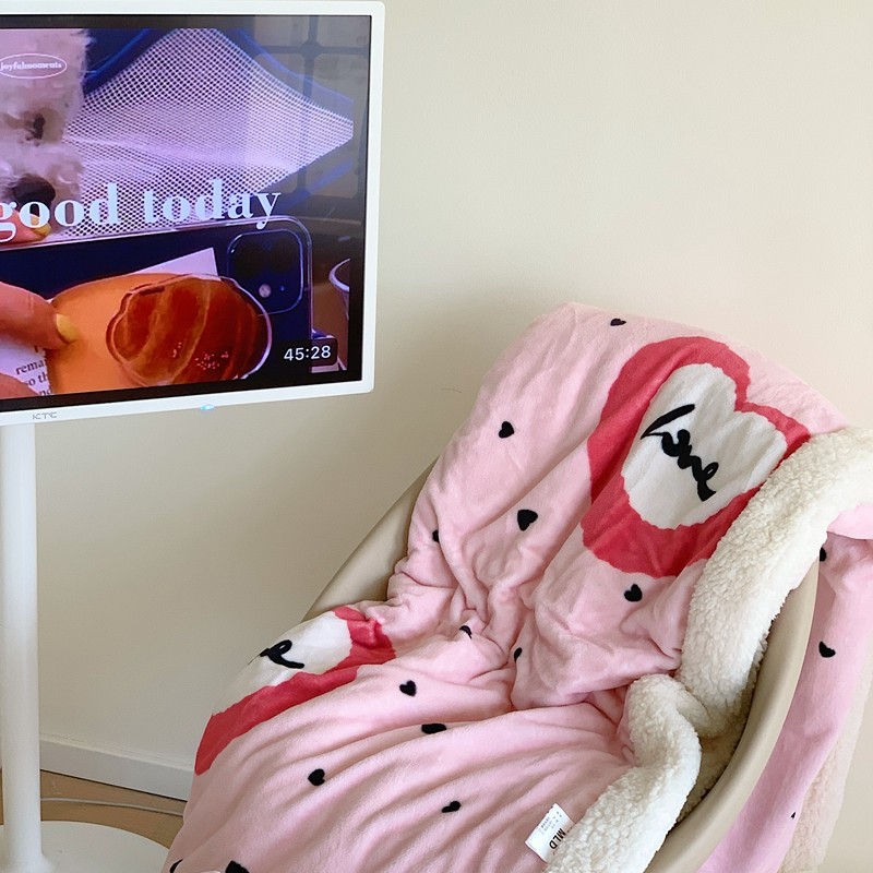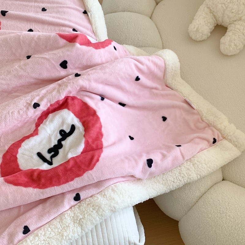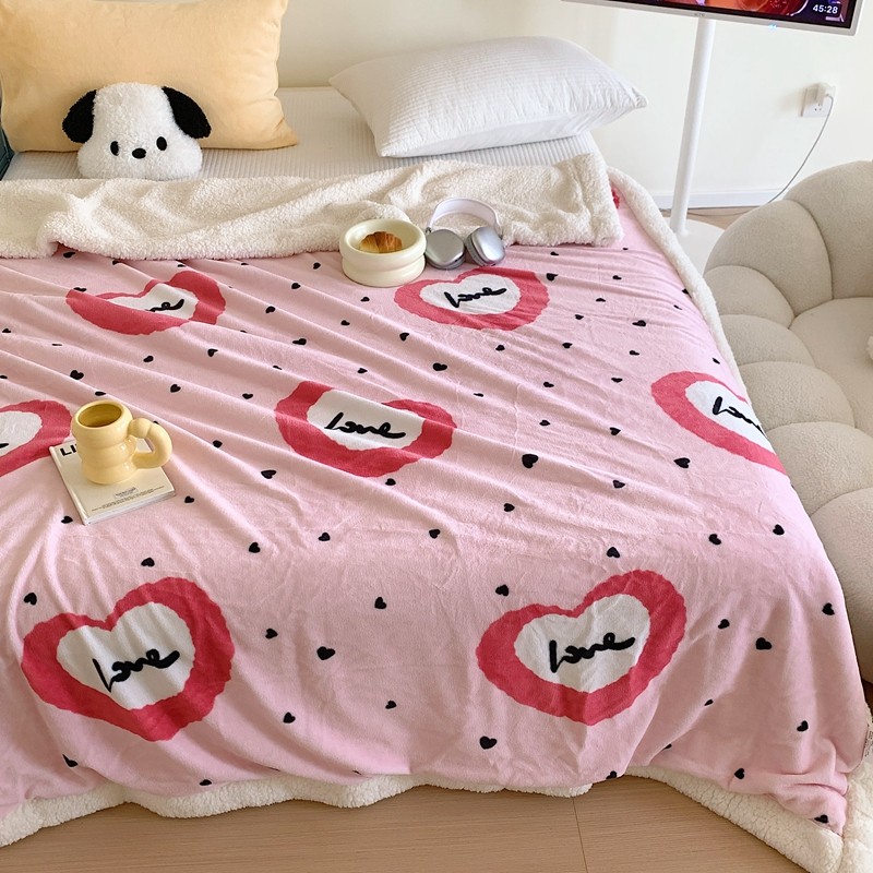 美乐迪 2023新款牛奶绒毛毯 粉爱心