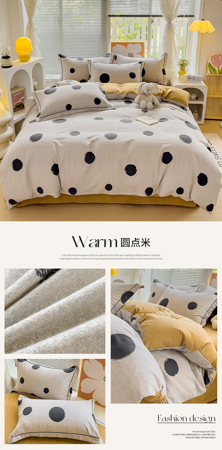 棉生活 2023新款铂金全棉磨毛系列(AB版)四件套 圆点米