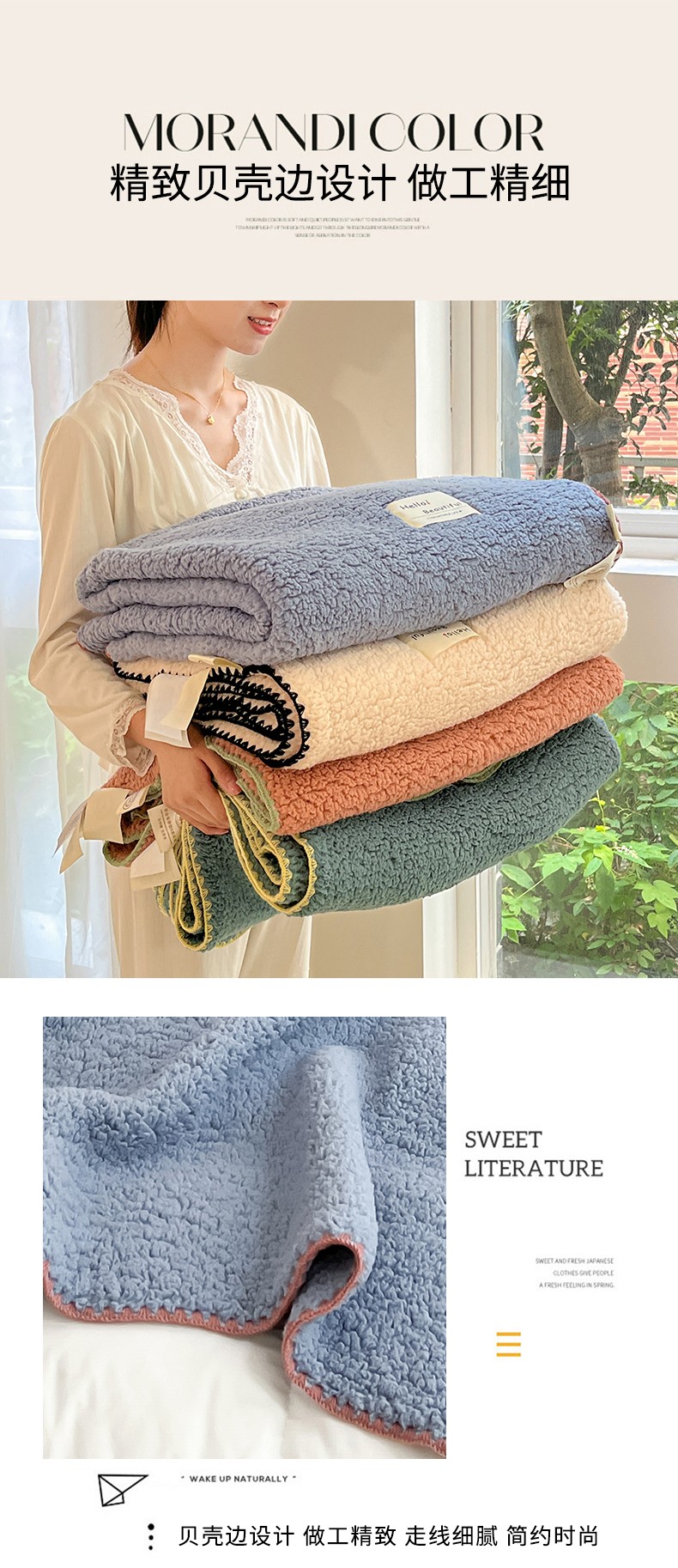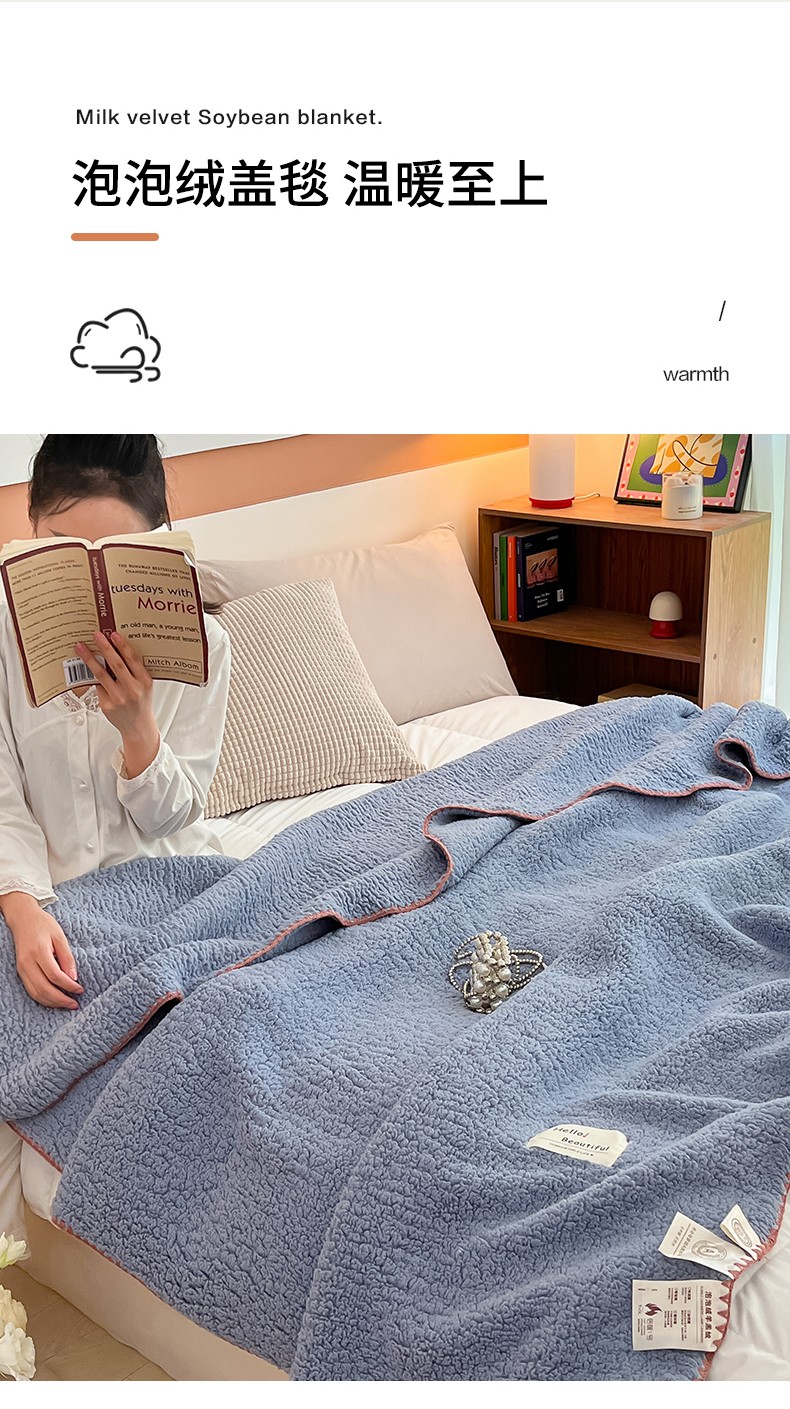 (总)穆琪 2025年新款A类泡泡绒多功能毯 精致贝壳边盖毯,粉豆沙,米月白,水雾绿,月光蓝