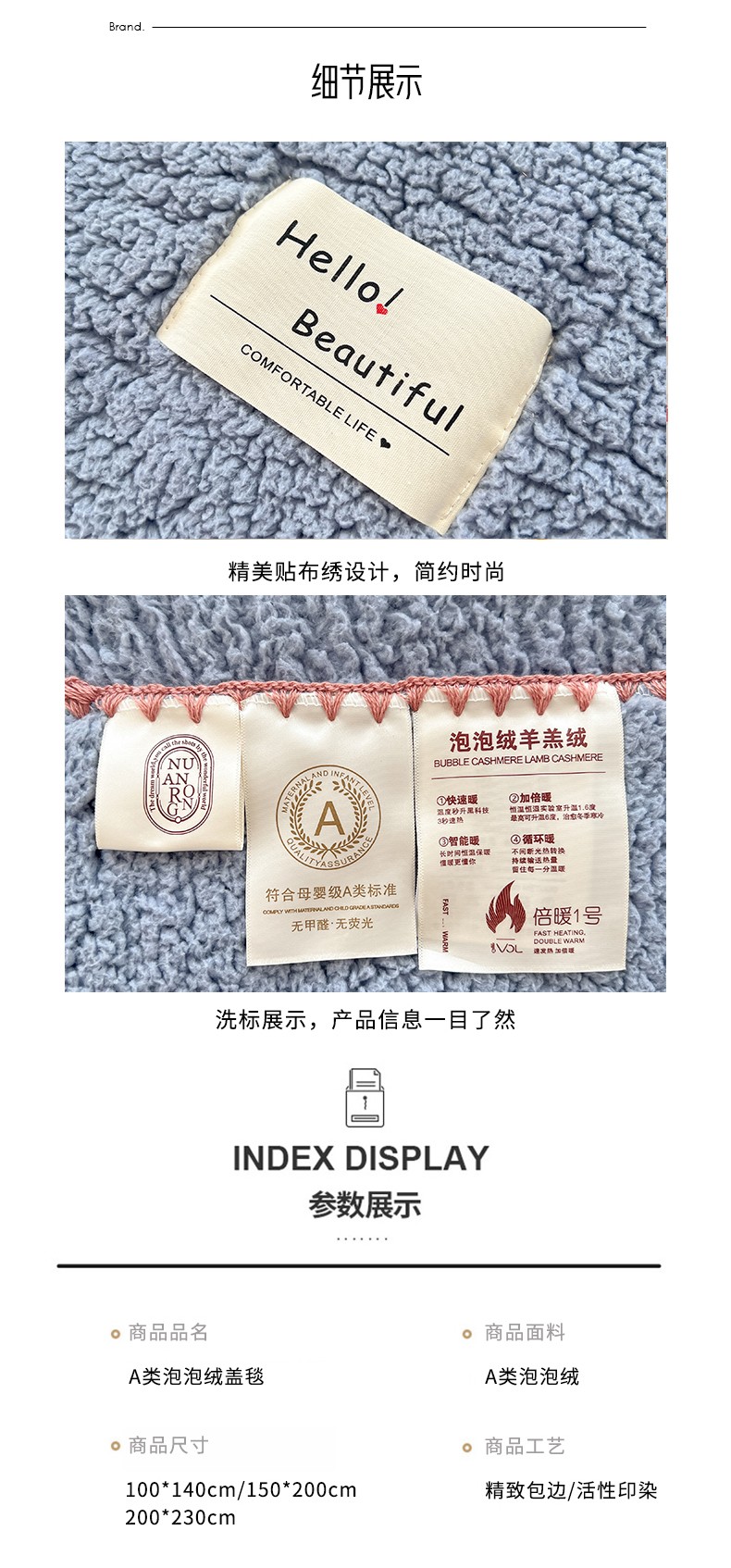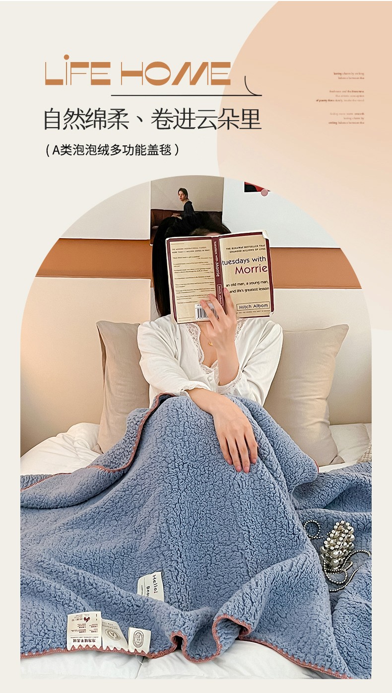 商品名称:羋多 A类泡泡绒多功能毯精致贝壳边盖毯毛毯 泡泡绒月光蓝
