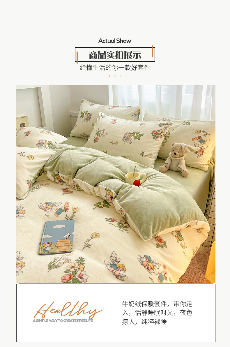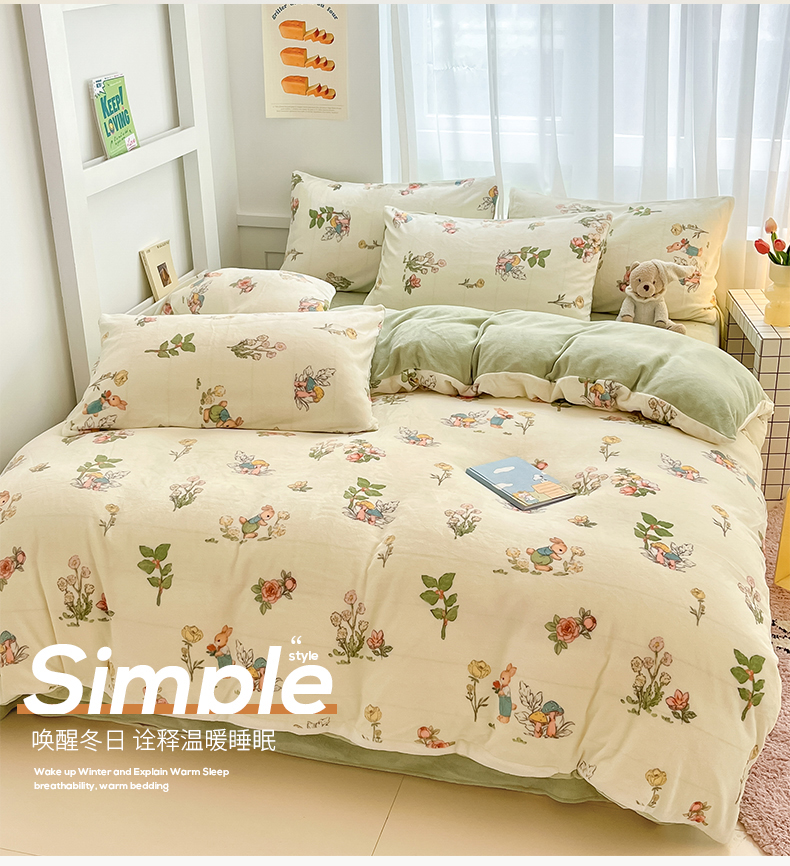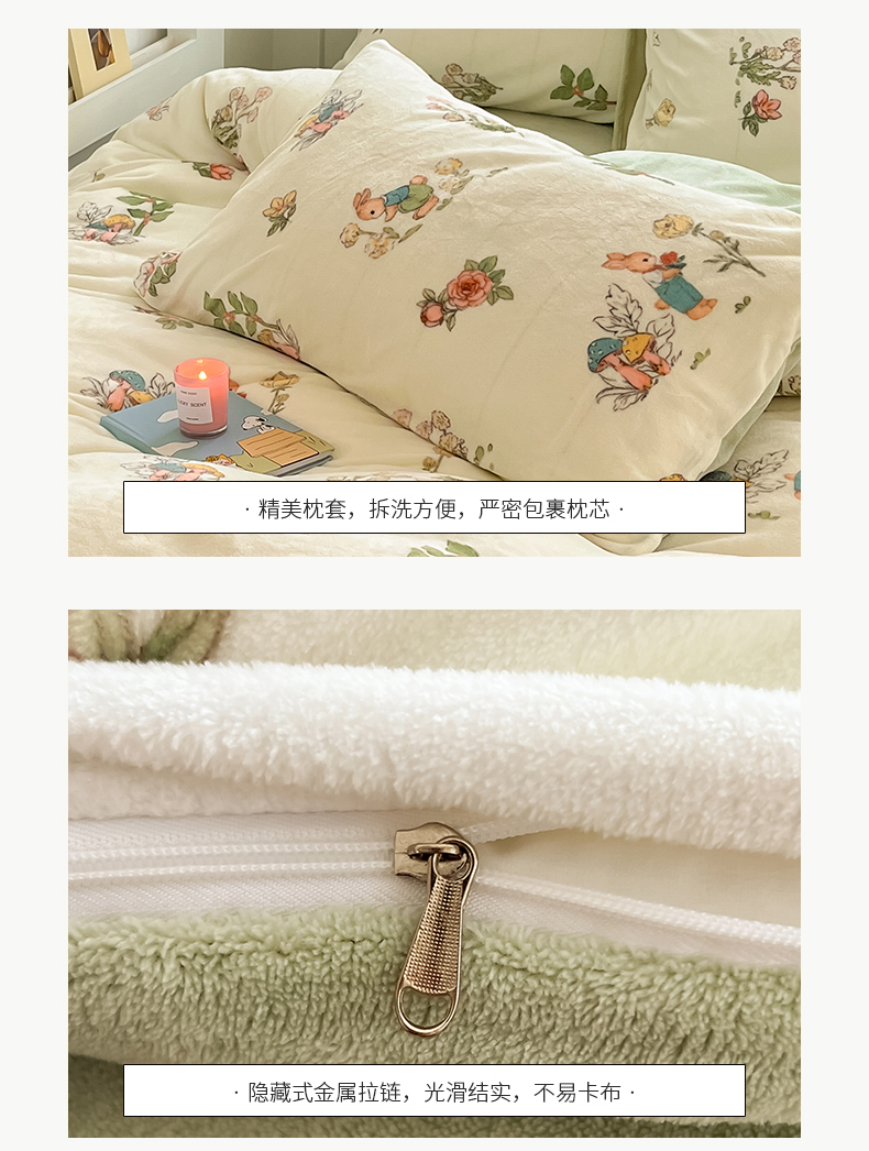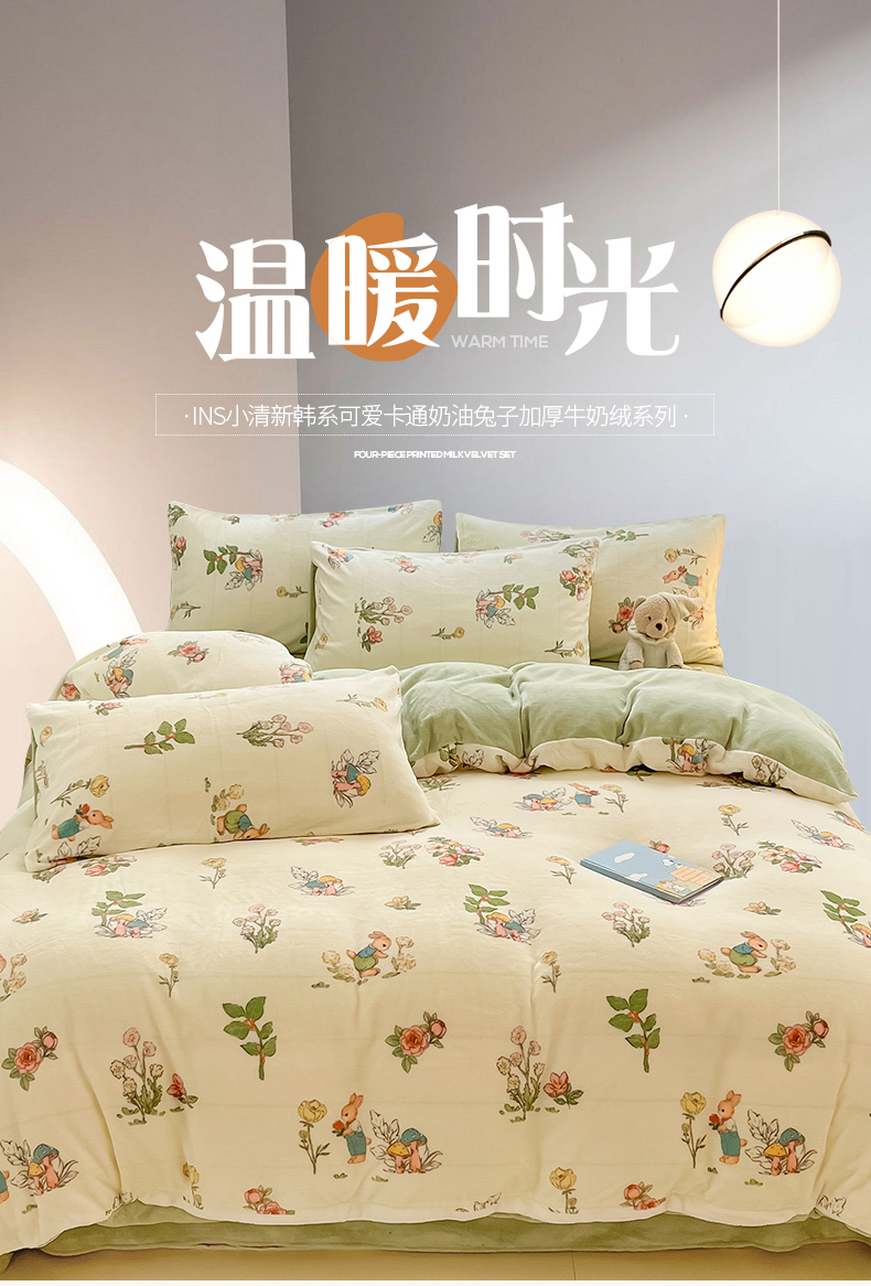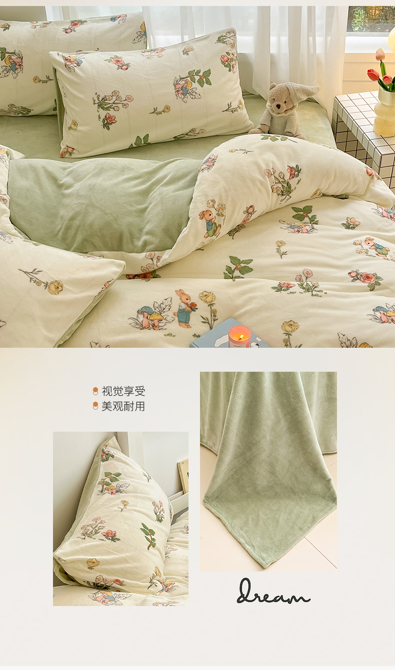 商品名称:(总)桃子 2023新款ins小清新韩系可爱卡通奶油兔子加厚牛奶绒系列四件套详情第三批