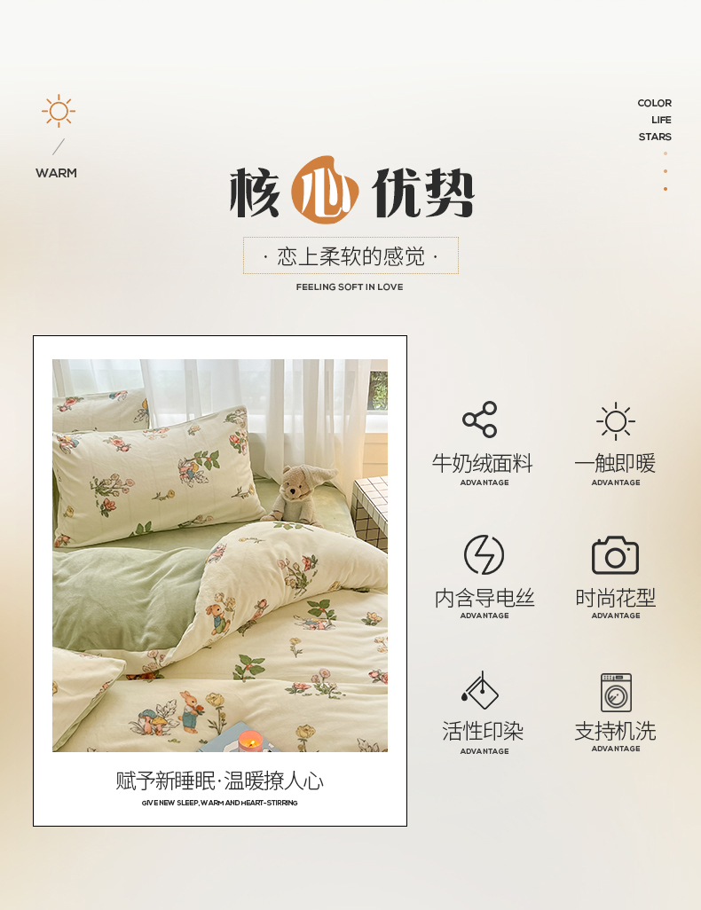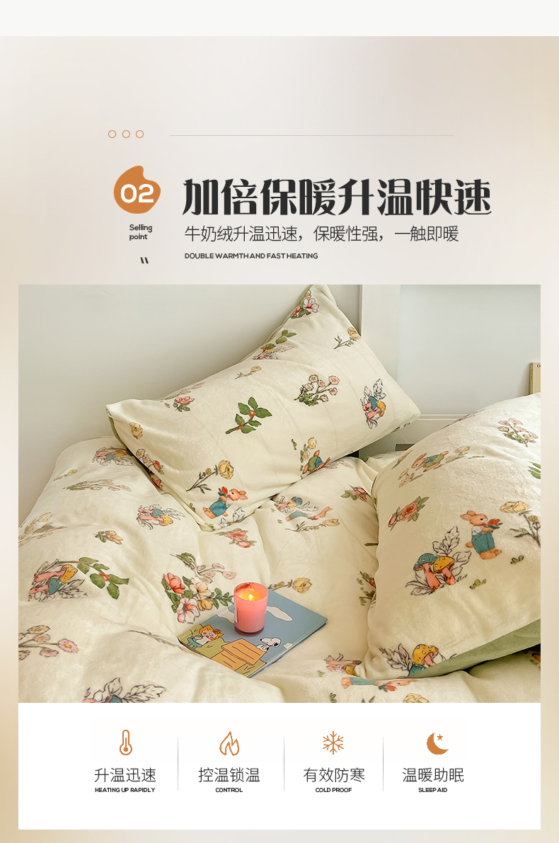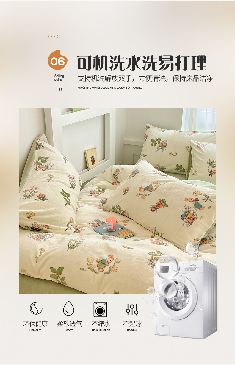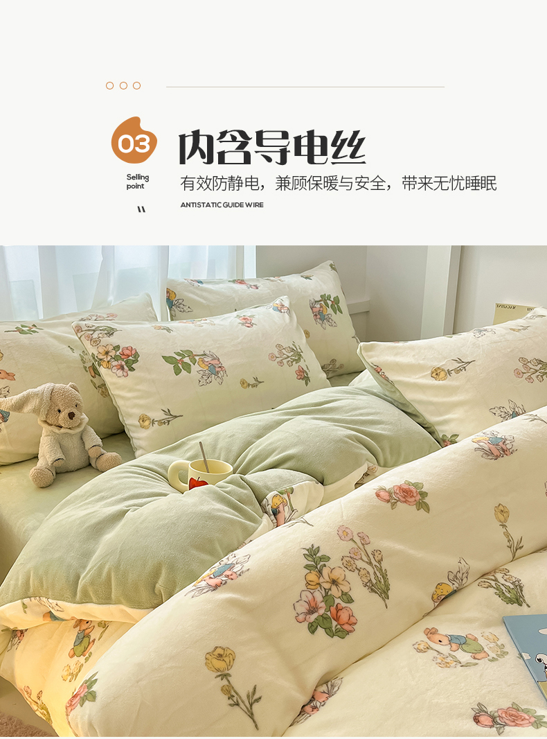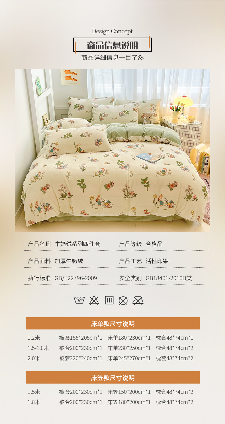 商品名称:(总)桃子 2023新款ins小清新韩系可爱卡通奶油兔子加厚牛奶绒系列四件套详情第三批
