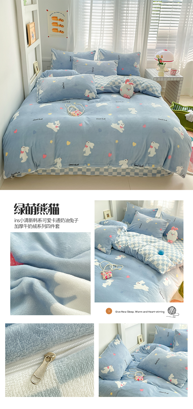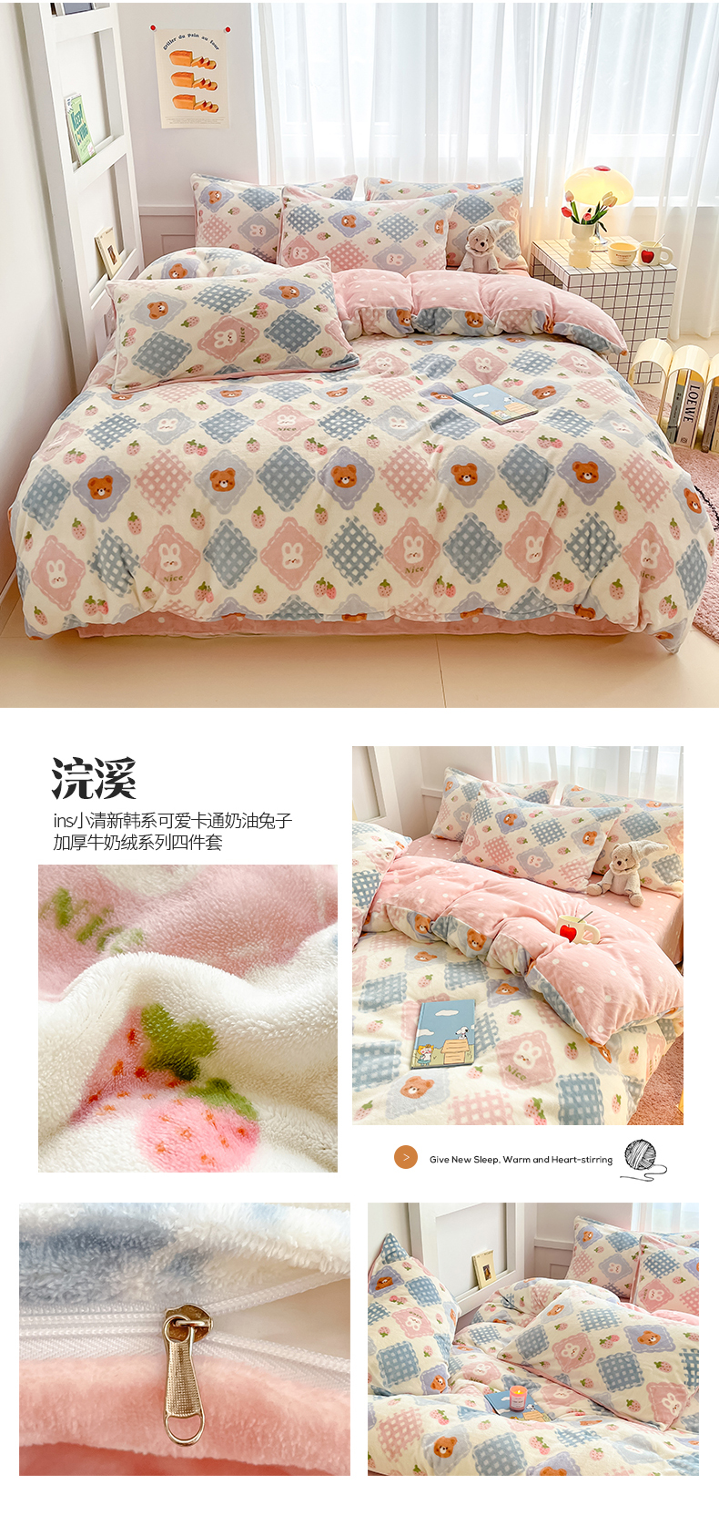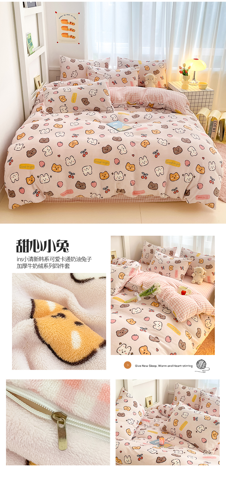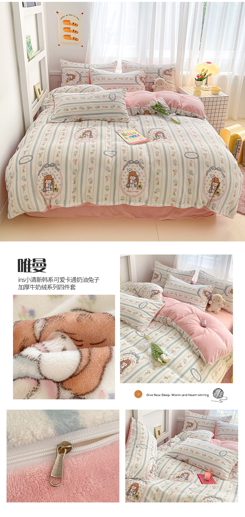 (总)桃子 2023新款ins小清新韩系可爱卡通奶油兔子加厚牛奶绒系列四件套详情第三批