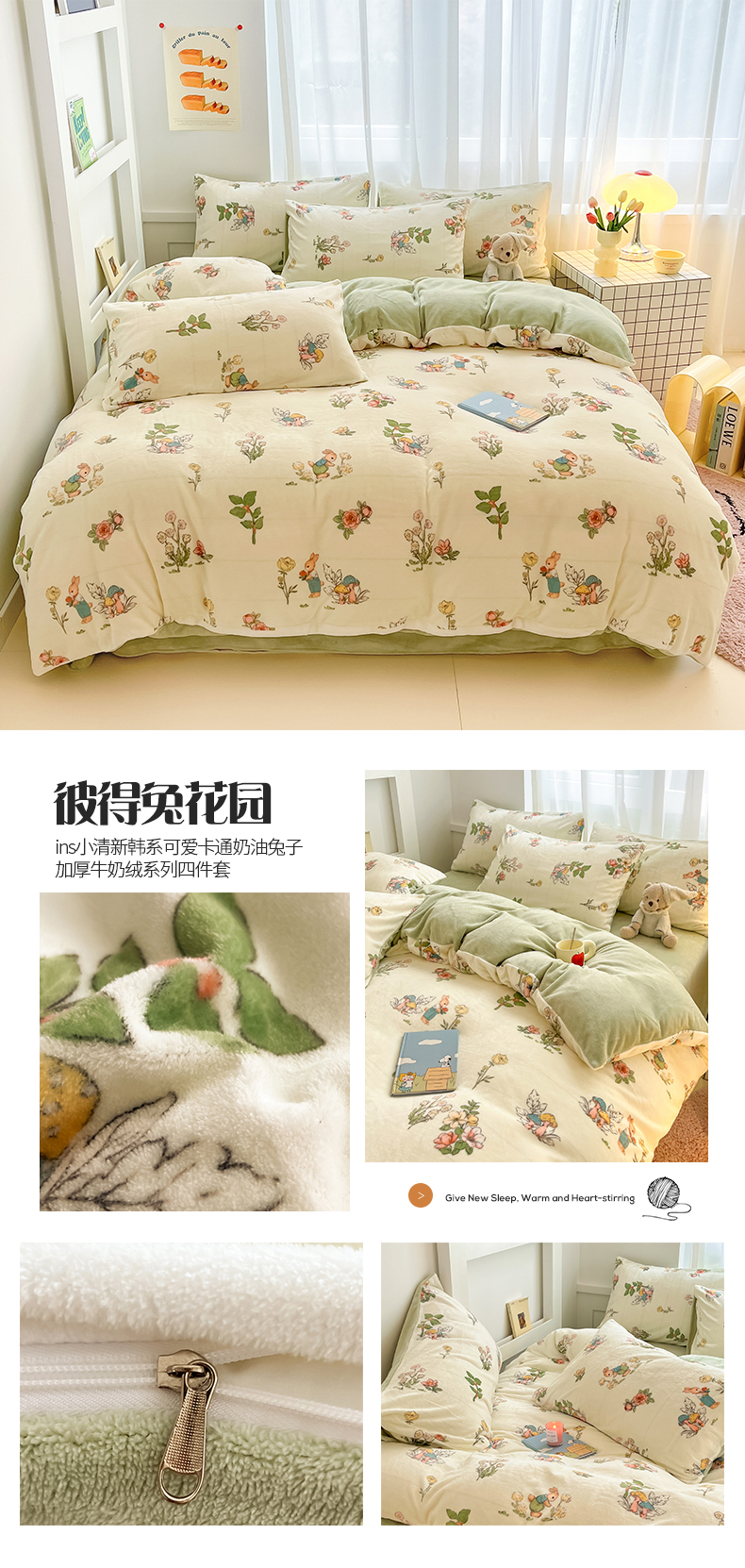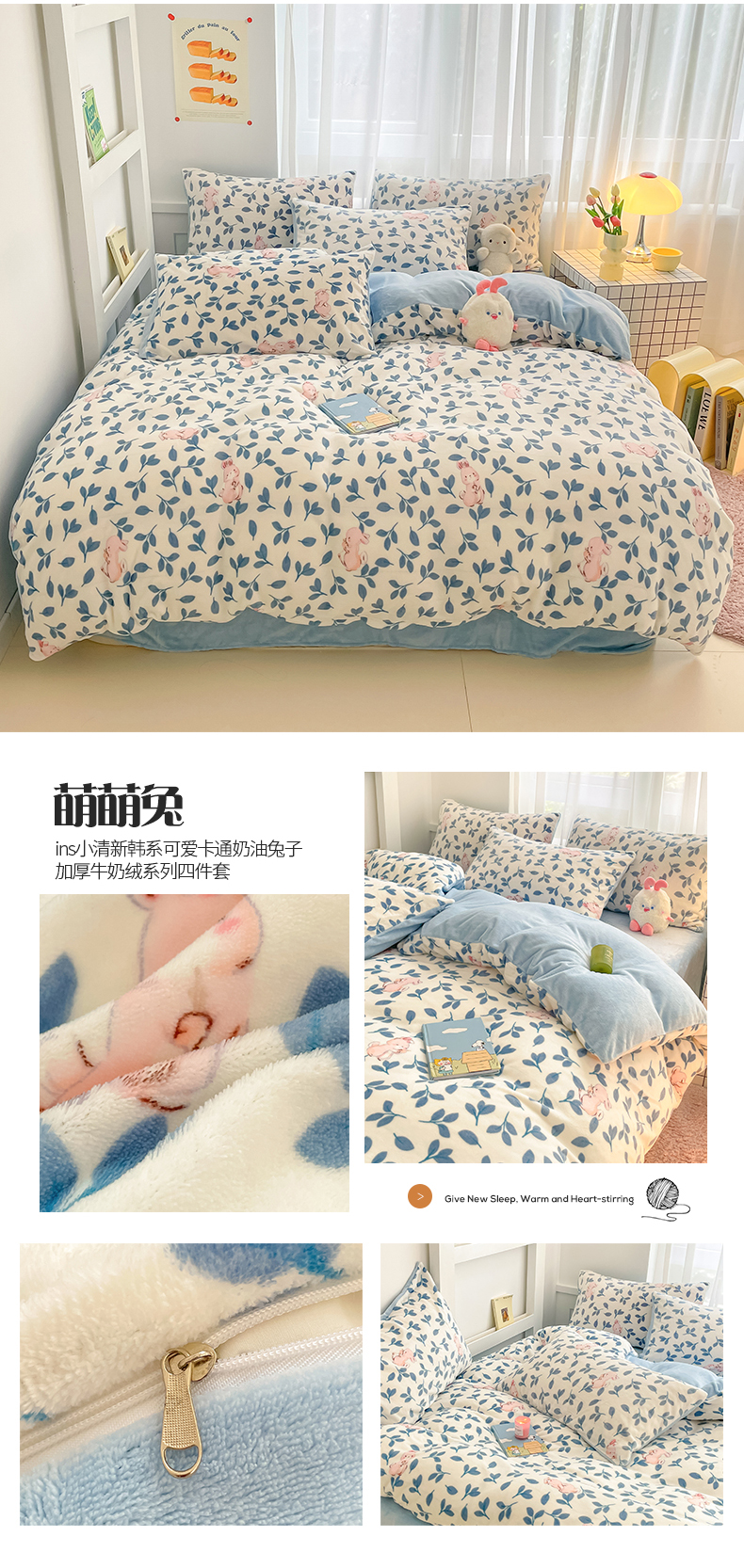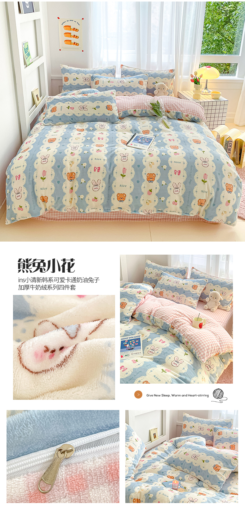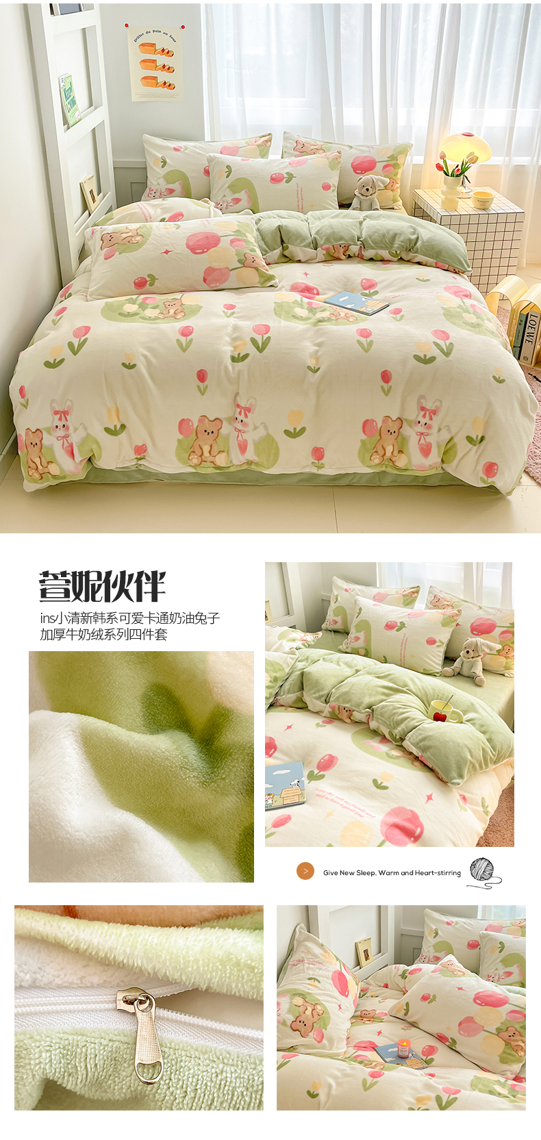 (总)桃子 2023新款ins小清新韩系可爱卡通奶油兔子加厚牛奶绒系列四件套详情第三批